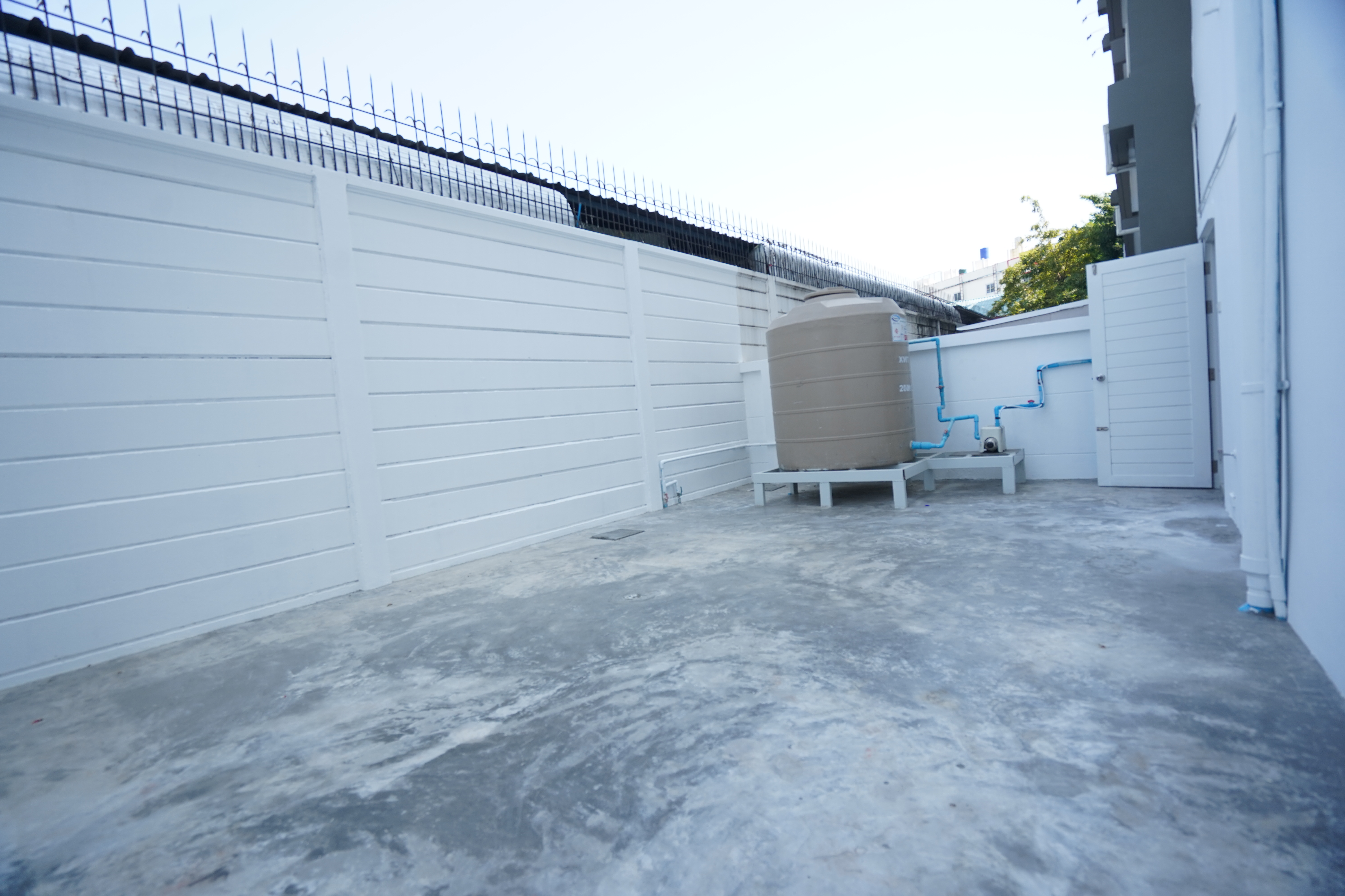 - ข้างหลังช็อปเฮ้าส์ มีพื้นที่ให้ต่อเติมเยอะ พร้อมเทปูนเปลือย สามารถต่อเติมครัว หรือห้องเก็บของได้