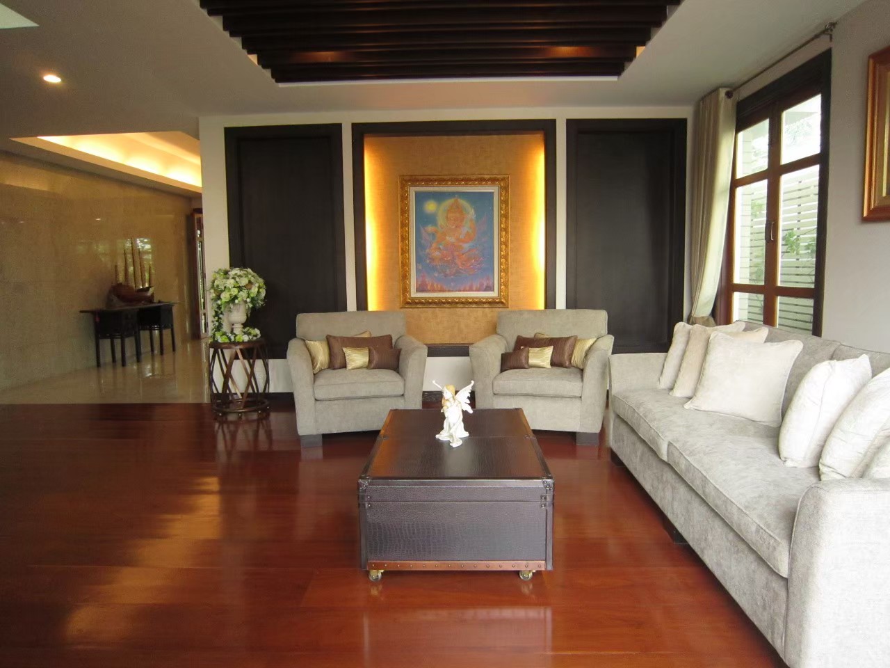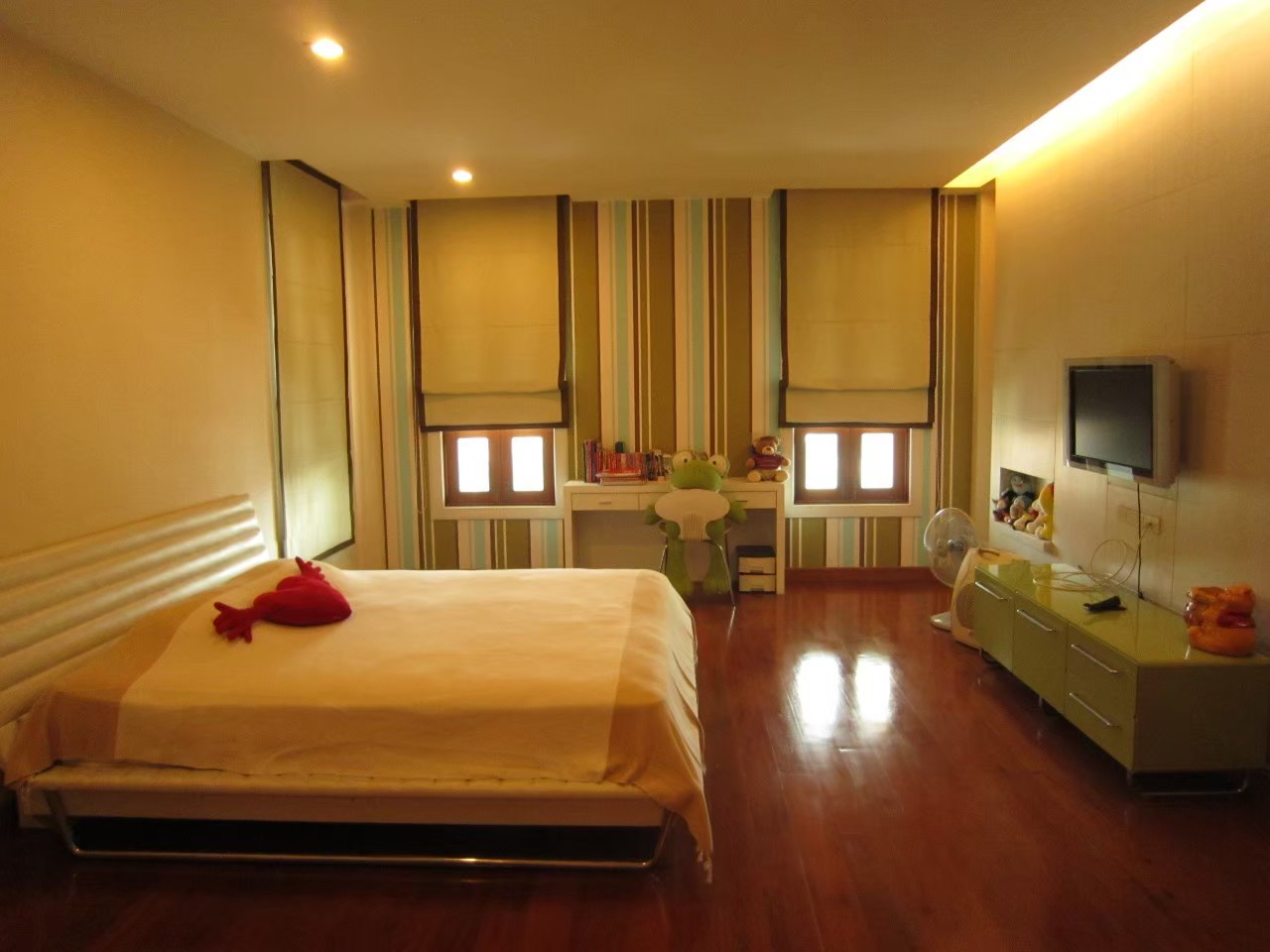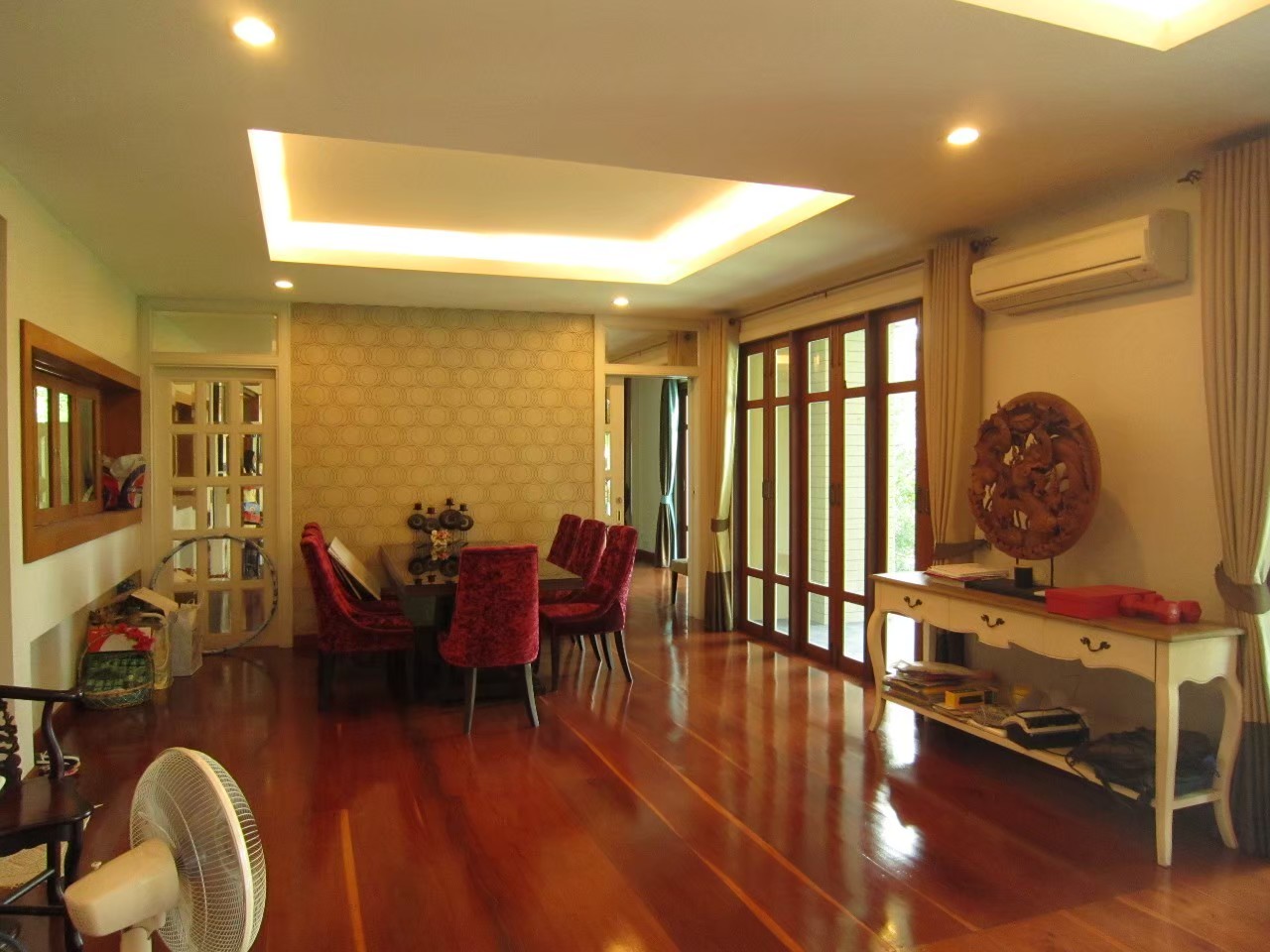 - มี4ห้องนอน 6ห้องน้ำ พื้นไม้มะค่าหน้า 8นิ้วยาว 2ม.ทั้งหลัง 1ห้องรับรอง 1ห้องรับแขก 1ห้องทำงาน 1ห้องฟิตเนส 1ห้องแต่งตัว 1ห้องพระ 1ห้องแม่บ้านพร้อมห้องน้ำ