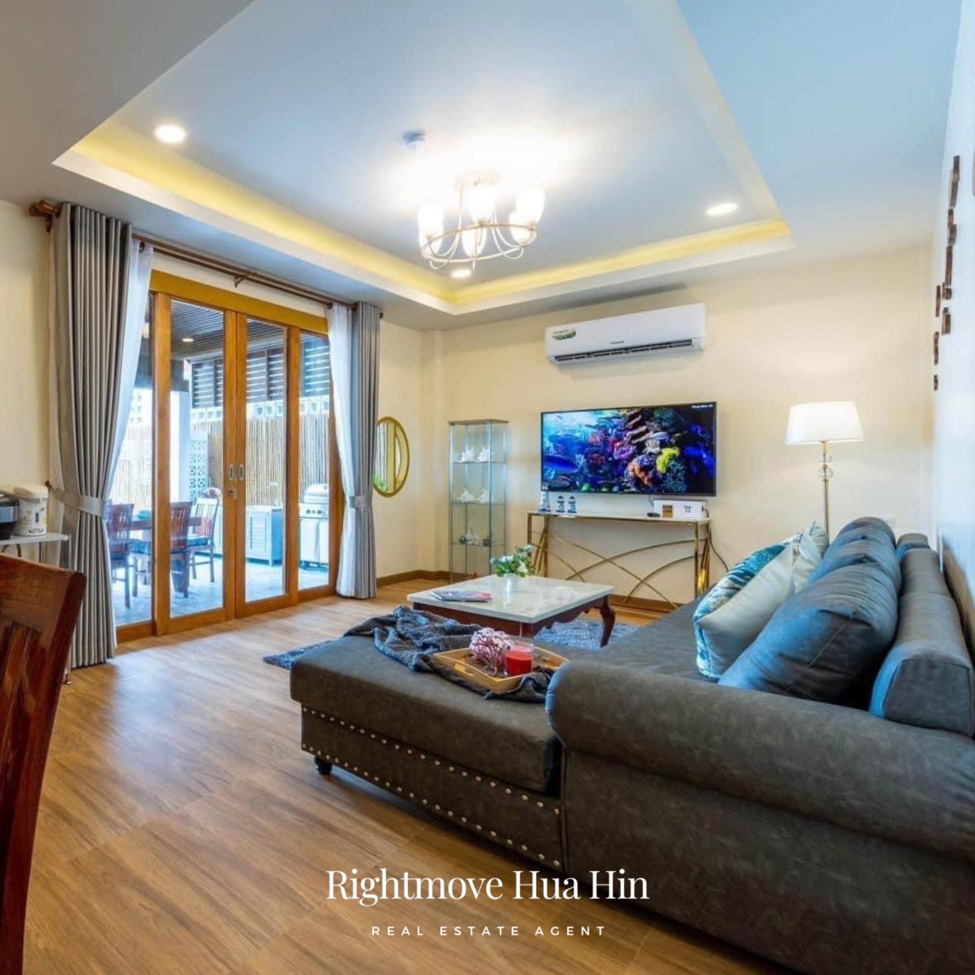 A pool villa with a land size of 65 square wah in a prime location just 8 minutes to Hua Hin.