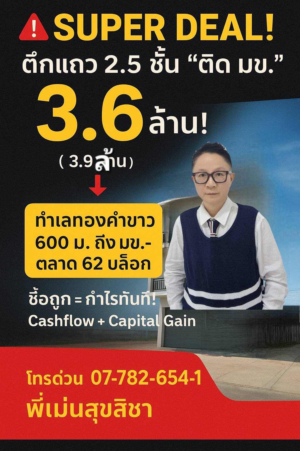 หลังมุม ติดถนน จอดรถส่วนตัวได้ 3 คัน สามารถทำธุรกิจ-ตู้หยอดเหรียญซักผ้า เสริมรายได้อีกทาง