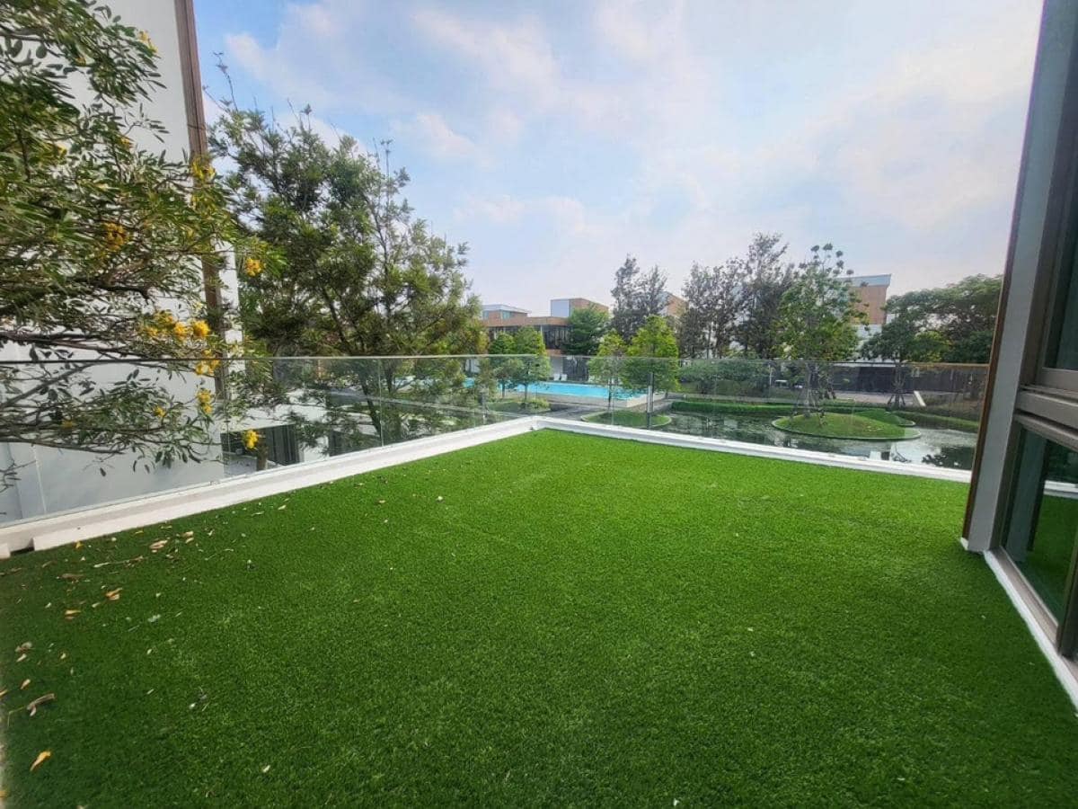 ให้เช่าบ้านเดี่ยว 3 ชั้น VIVE พระราม 9 พร้อมอยู่ ด้านหน้าเป็นบ่อน้ำ ด้านหลังวิวสนามกอล์ฟ อยู่ใกล้ Club Houseสระว่ายน้ำ โครงการจาก Land&Houses
