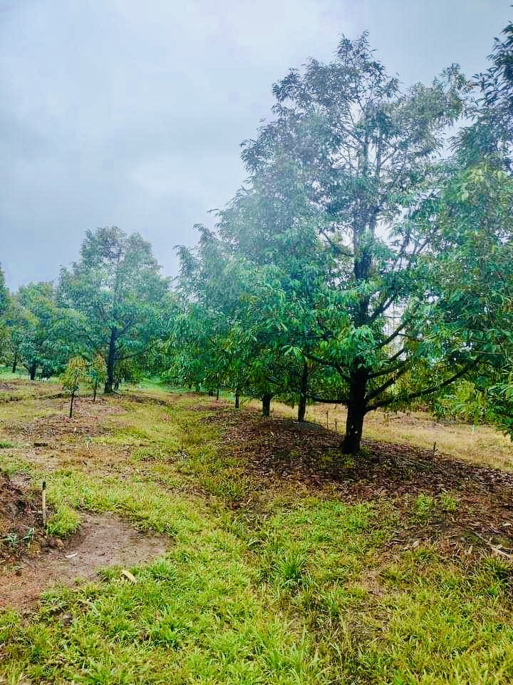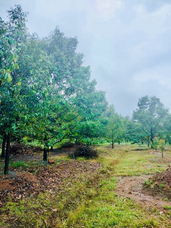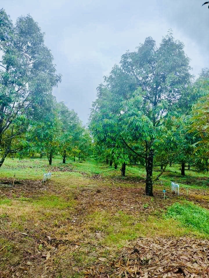 For sale: Durian orchard in Makham District Chanthaburi Province 4 rai (approx. 1.6 acres) with water source from Khao Banjob headwaters a drilled well and a large renovated durian packing house