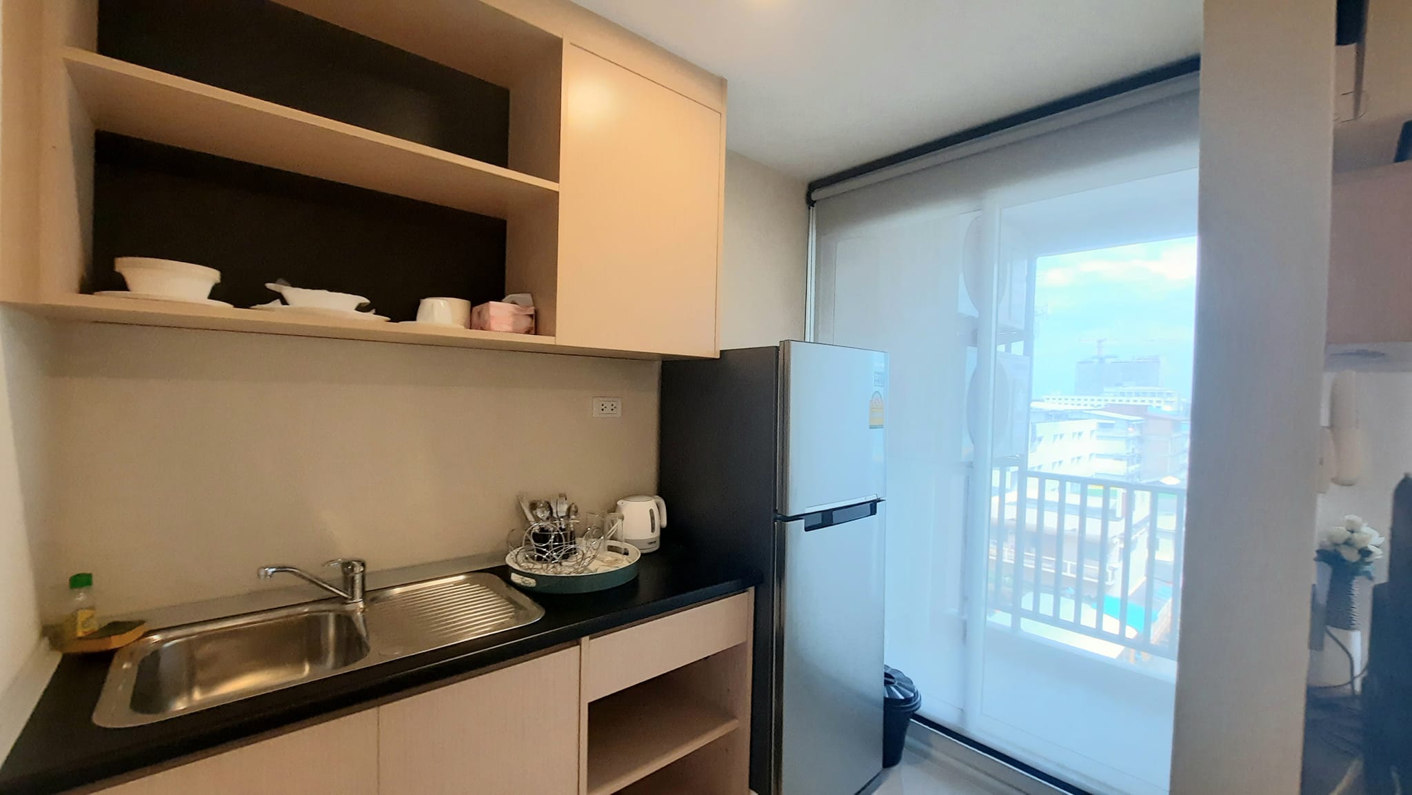 คอนโด 1 ห้องนอน พร้อมห้องรับแขก ครัว ตกแต่งครบ
