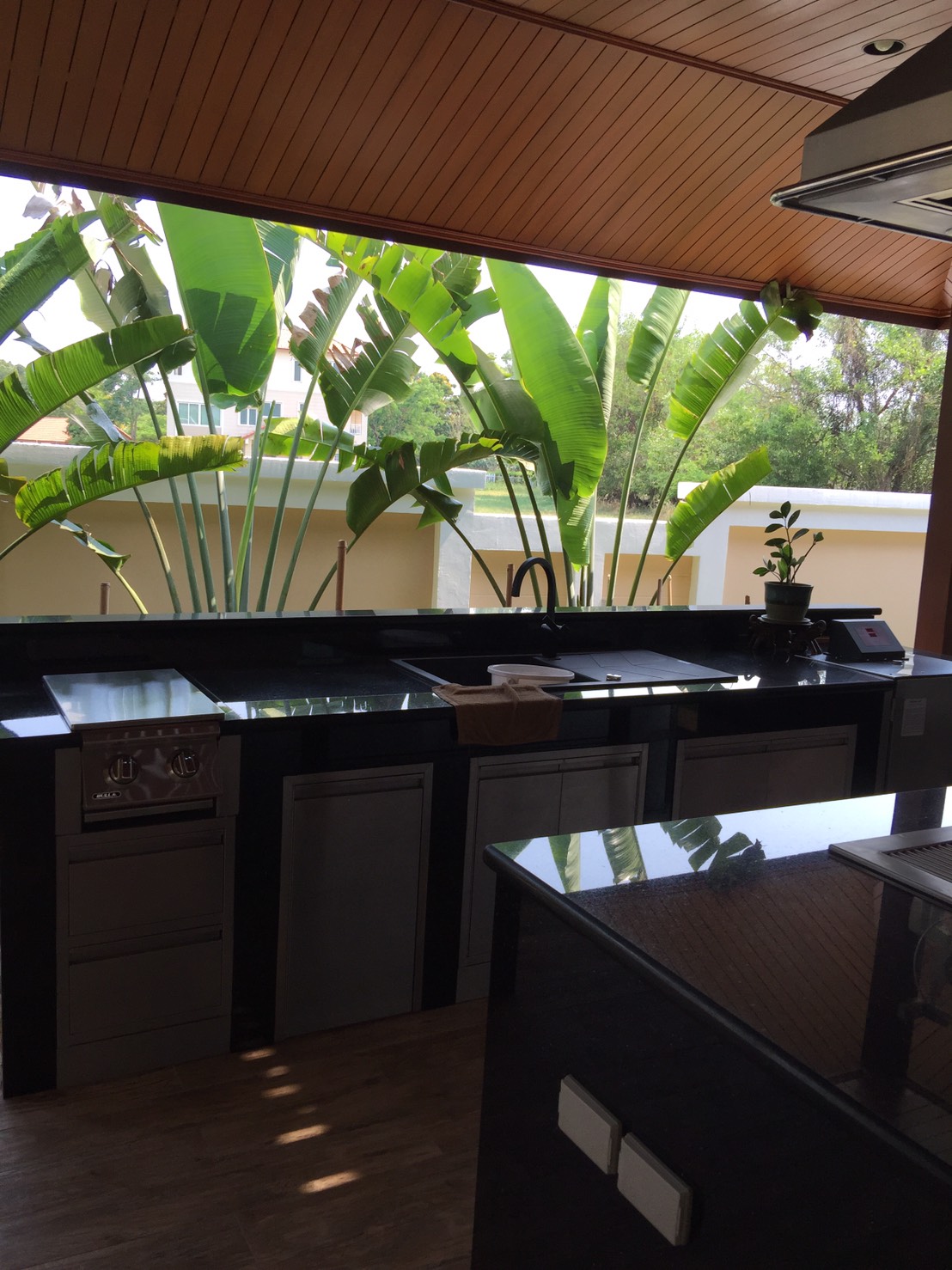 -ด้านนอก ศาลาบาร์บีคิว มีตู้เย็น เตาทำอาหาร เตาย่าง ตู้อบ ทีวี