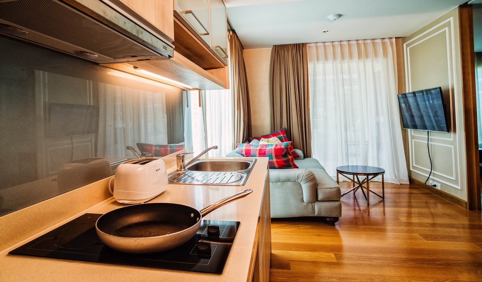 - 1 Bed/1 Bath 44.xxsqm Hotel Service Residence Condominium with free cleaning every week, hotel facilities and room service.