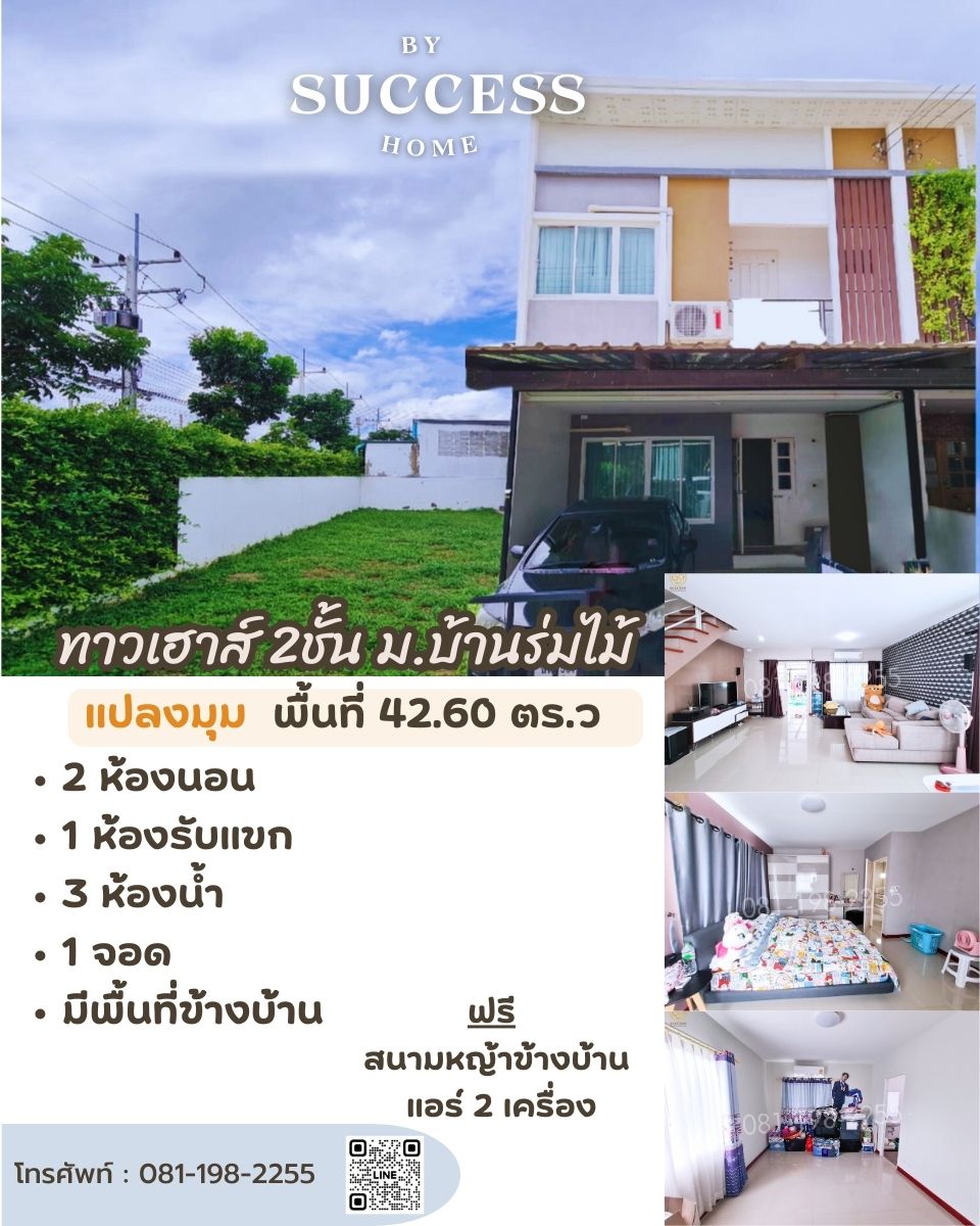 ทาวน์โฮมสองชั้น หลังริม มีสนามหญ้าข้างบ้าน พื้นที่ 42.60 ตร.ว