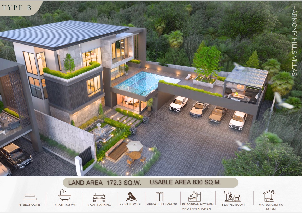 - ฟอร์นิเจอร์และสิ่งอำนวยความสะดวกครบครัน สระว่ายน้ำส่วนตัว ห้องครัวพร้อมอุปกรณ์ครบครันและอื่นๆ อีกมากมาย