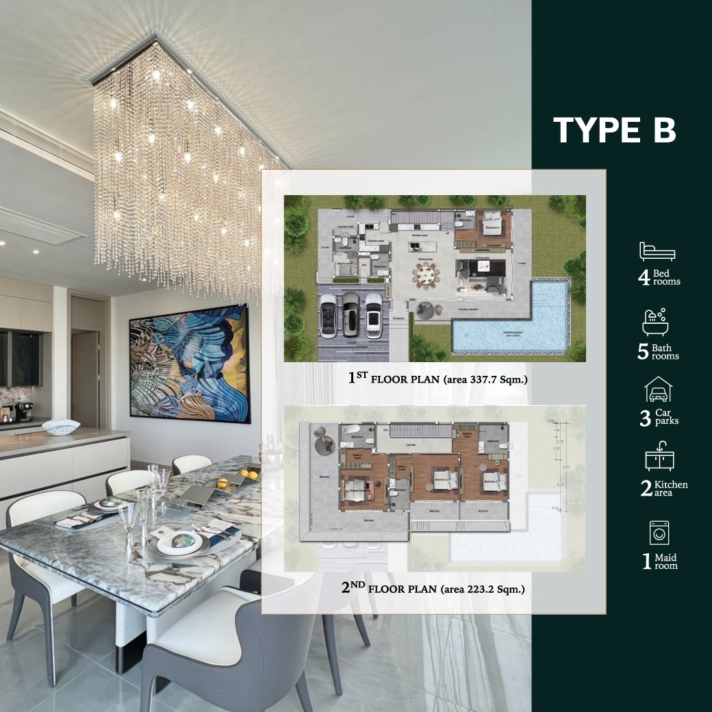 - พื้นที่ส่วนกลางและสระน้ำขนาดใหญ่