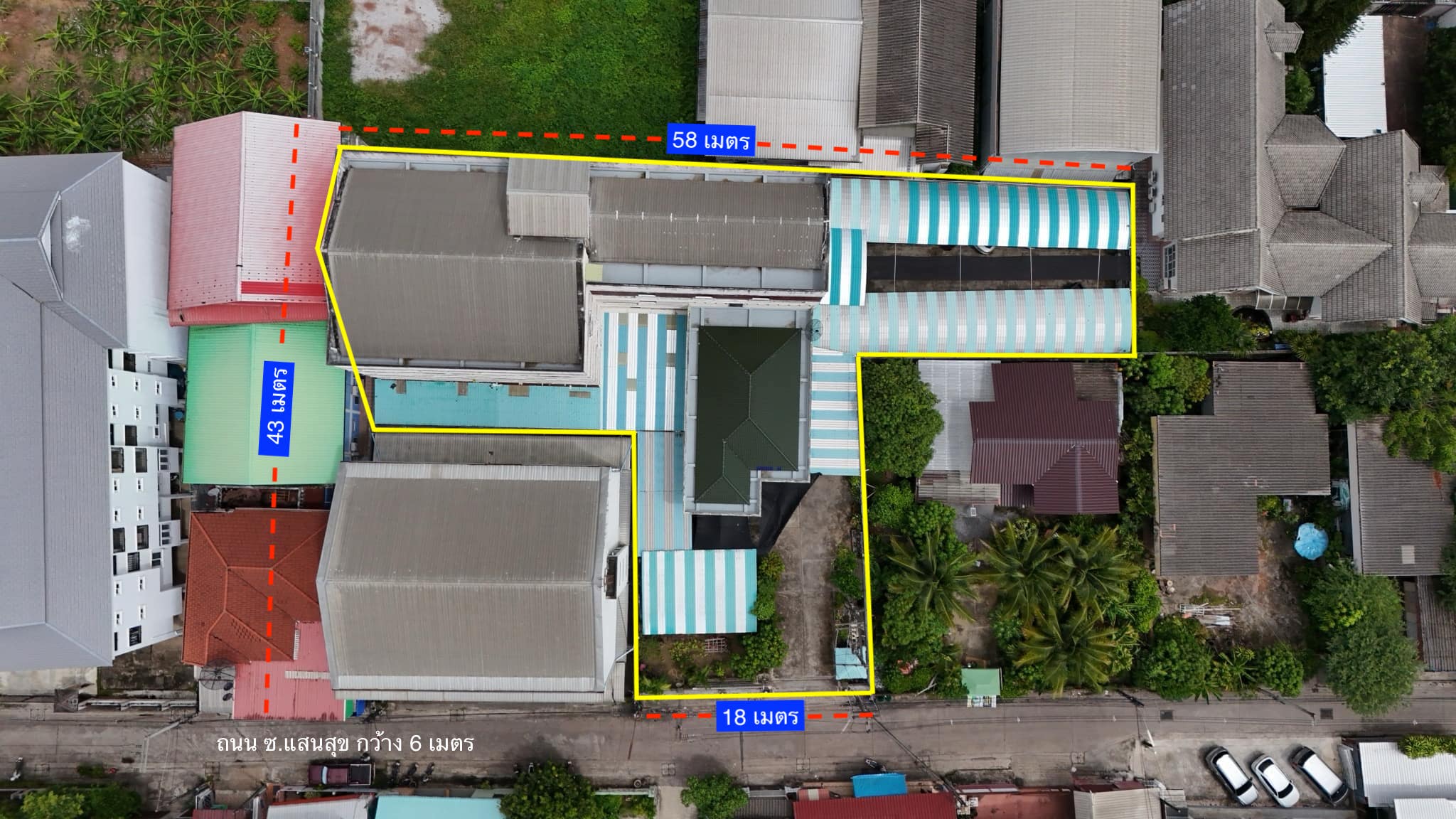 • ความกว้างถนน 6 เมตร