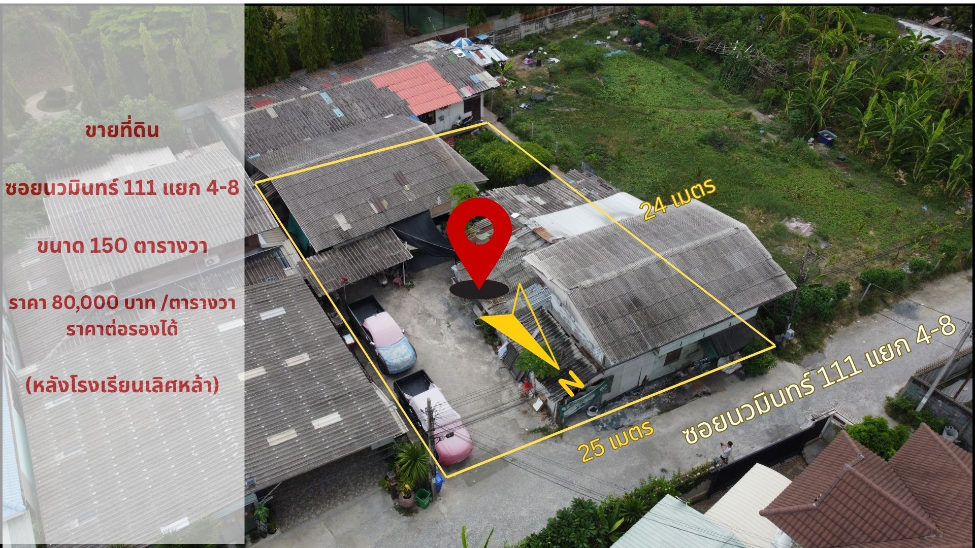 ขายที่ดินสวย ซอยนวมินทร์ 111 แยก 4-8 อยู่หลังโรงเรียนเลิศหล้า ขนาด 150 ตารางวา ใกล้ถนนเกษตรนวมินท์