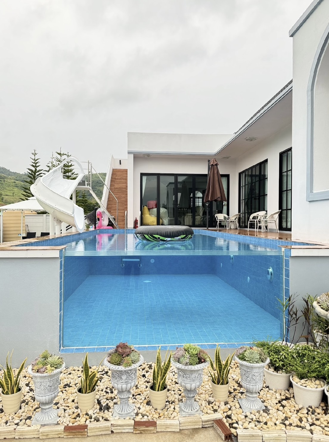 - สระว่ายน้ำส่วนตัวขนาดใหญ่พร้อมกระจกซีทรู