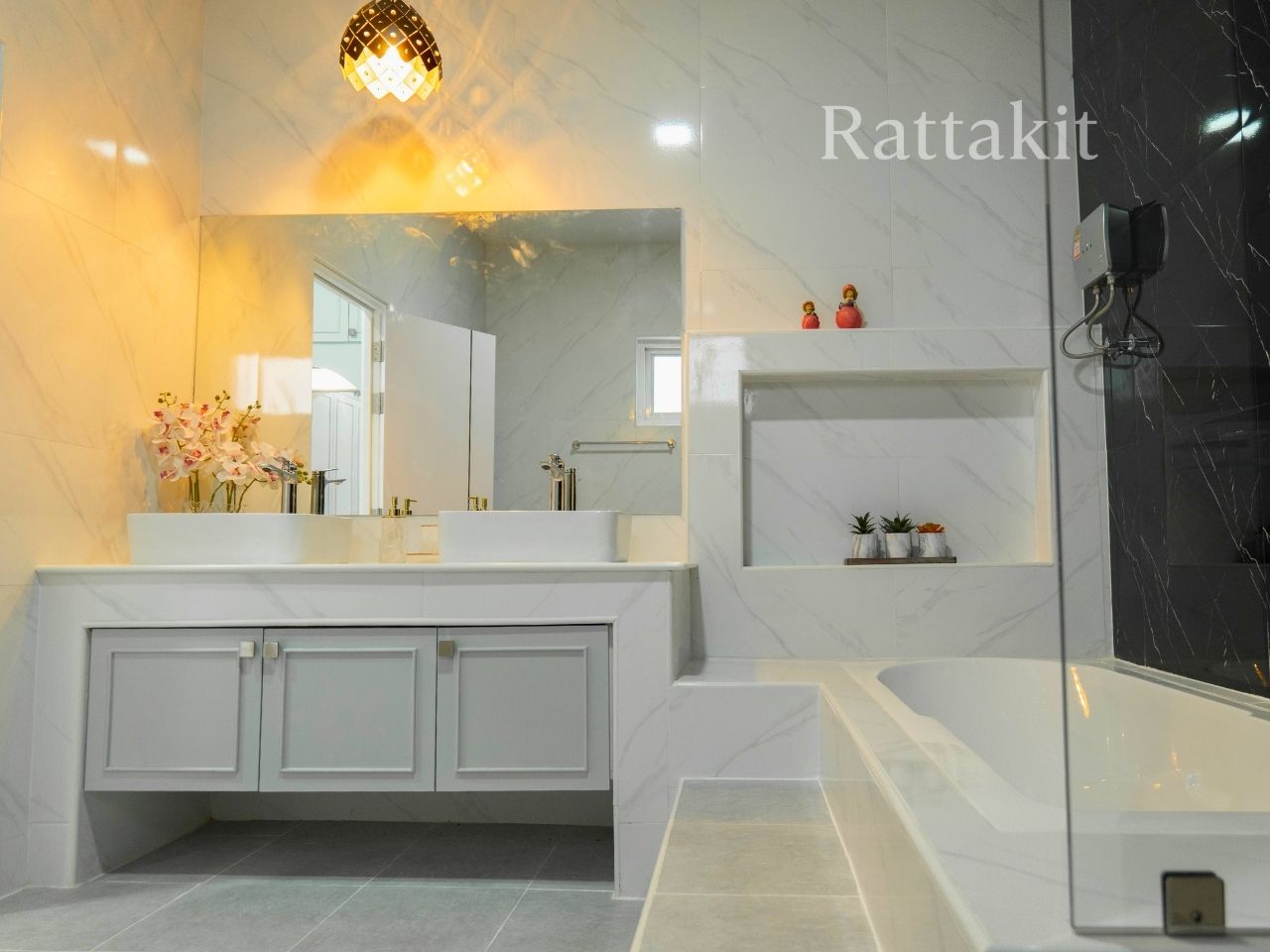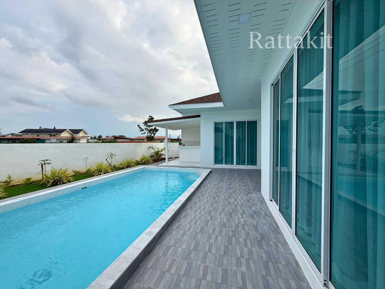This brand-new 3-bedroom 3-bathroom pool villa is fully completed and ready to move in featuring elegant interiors a private saltwater pool and scenic mountain views.
