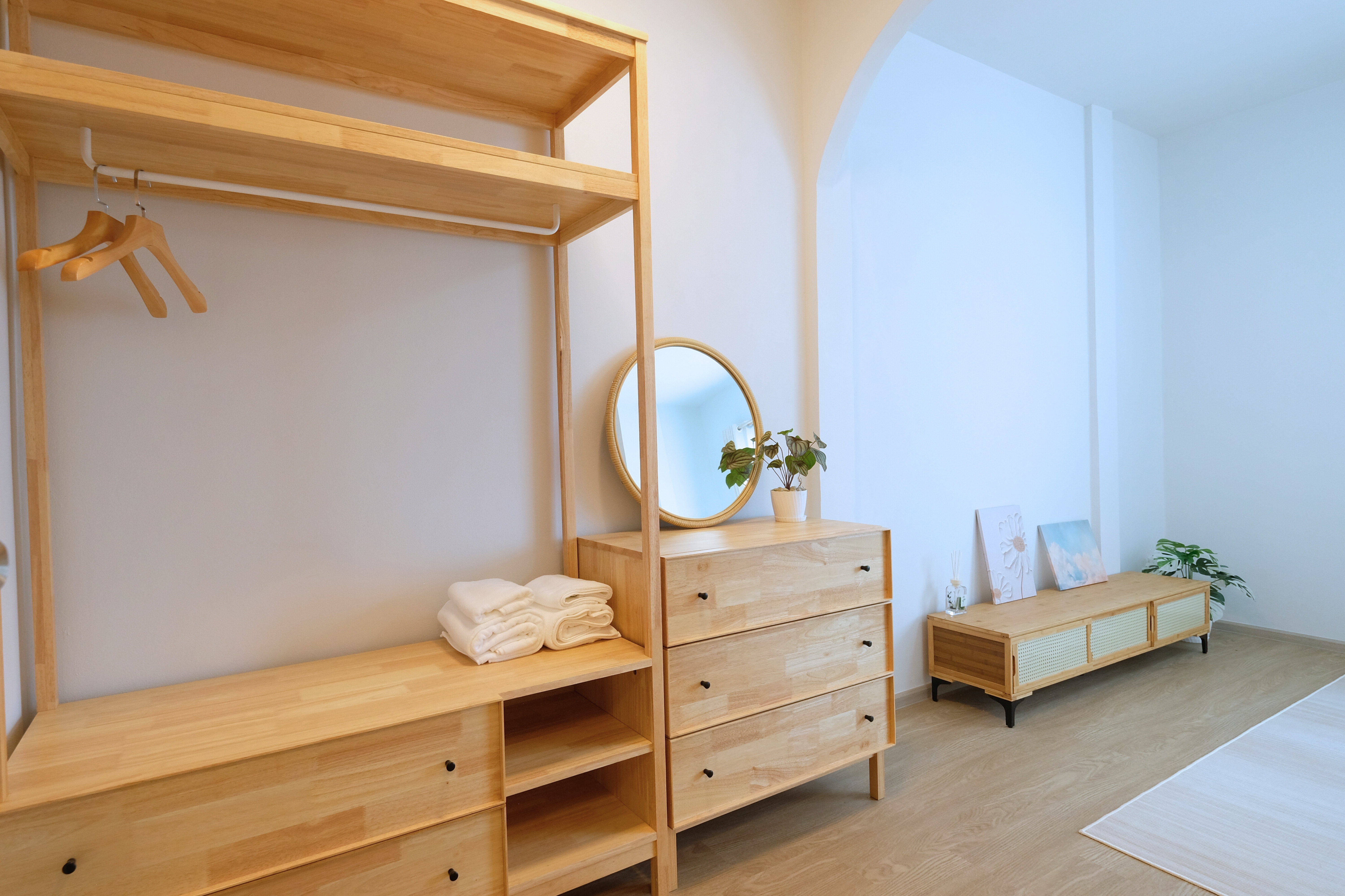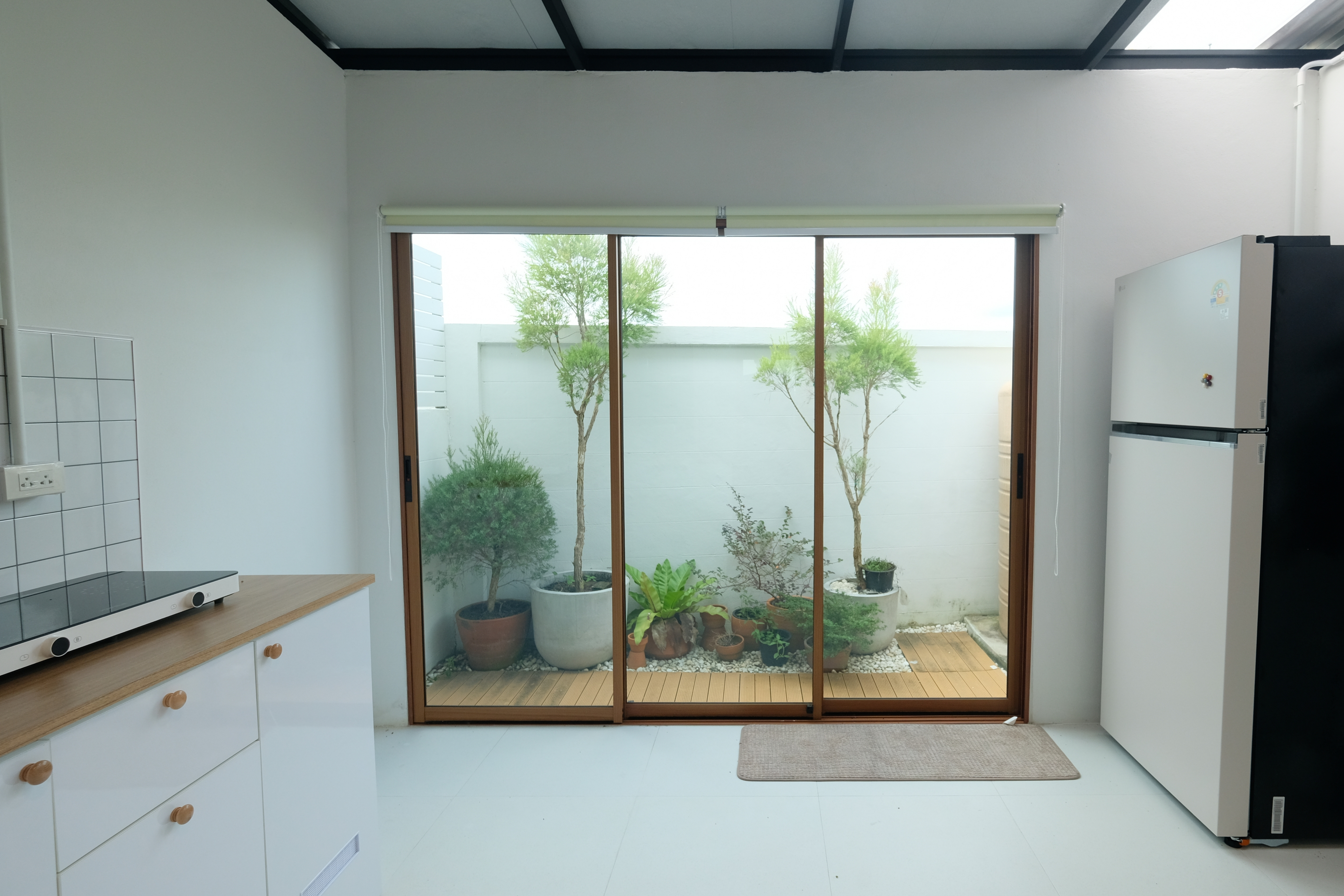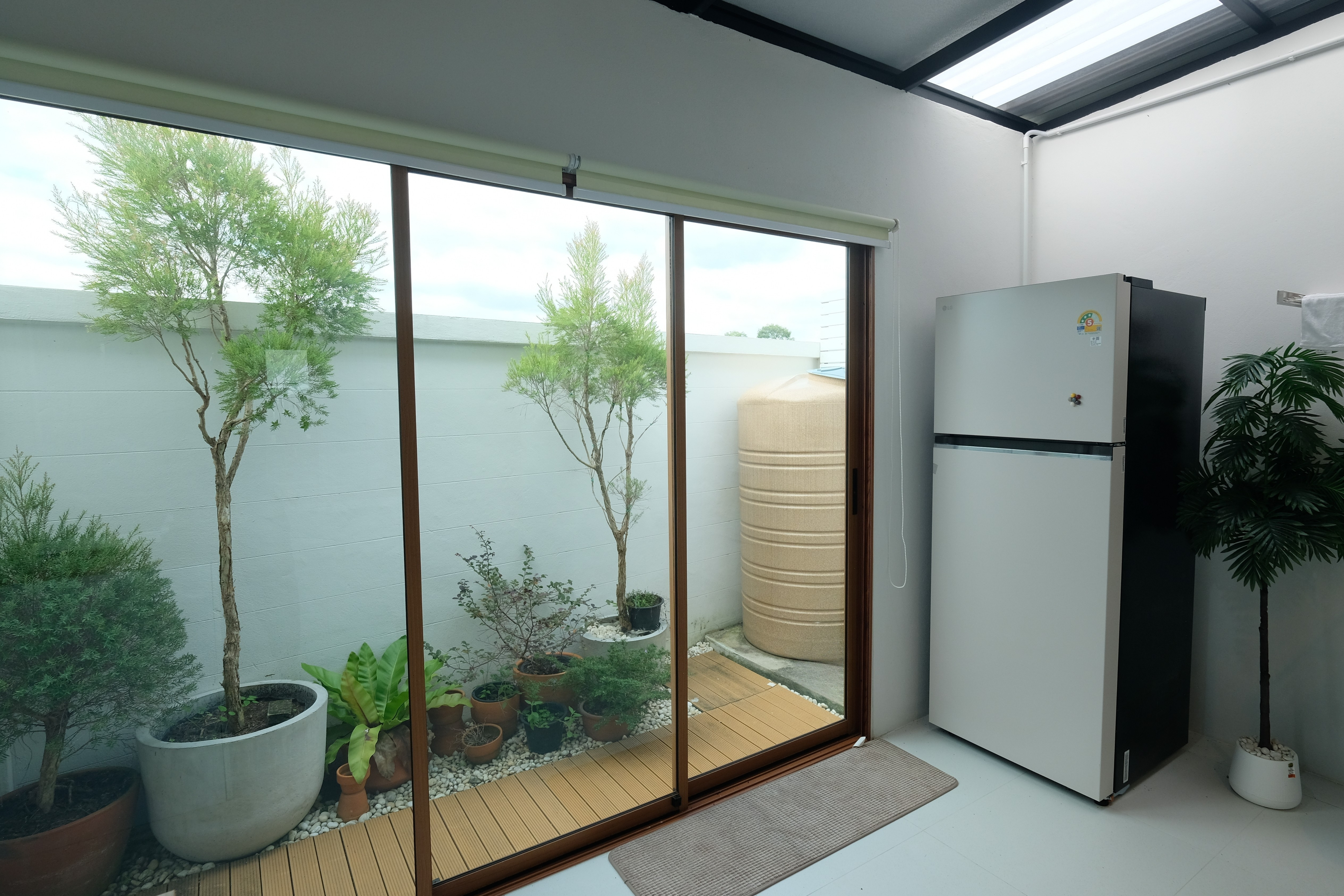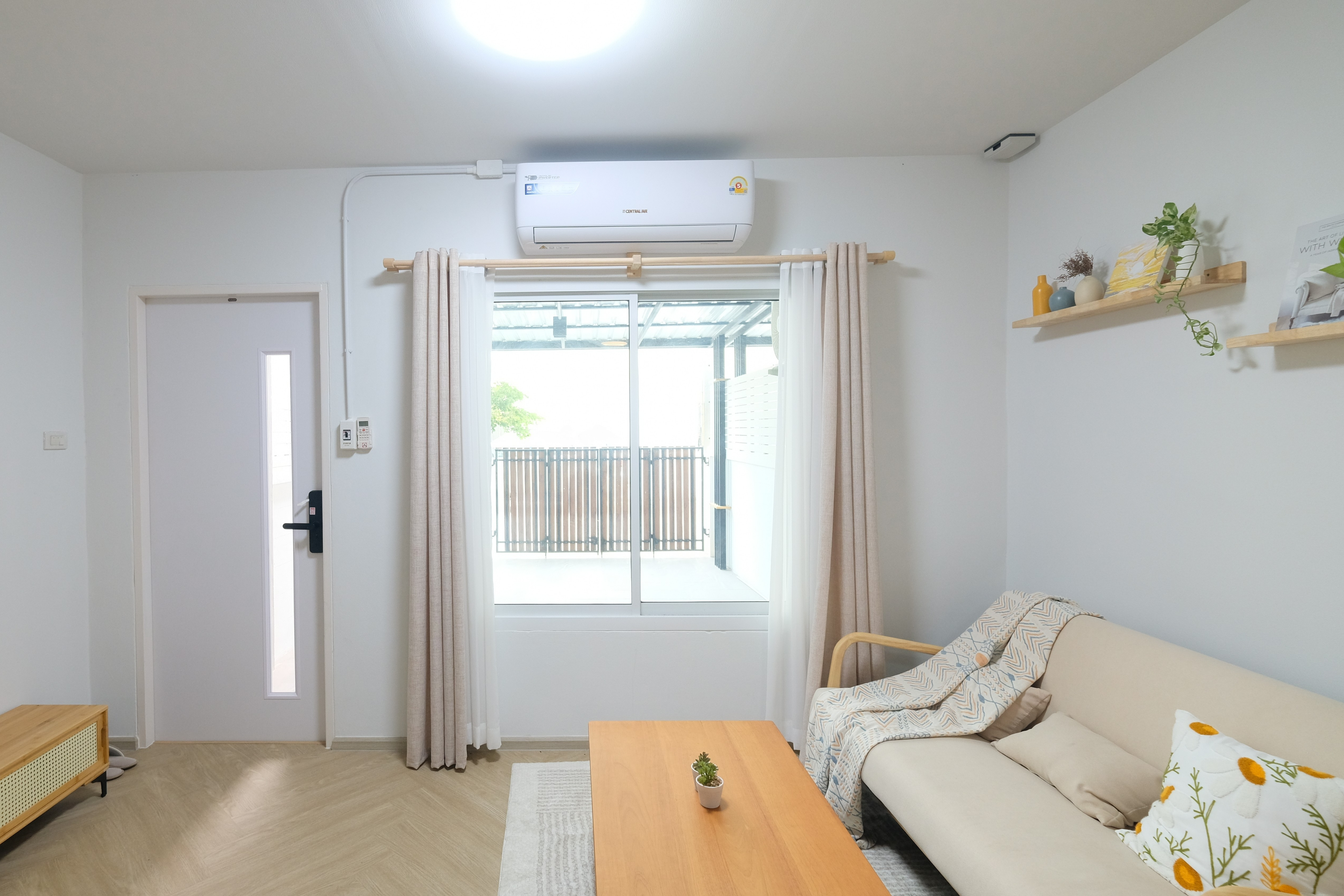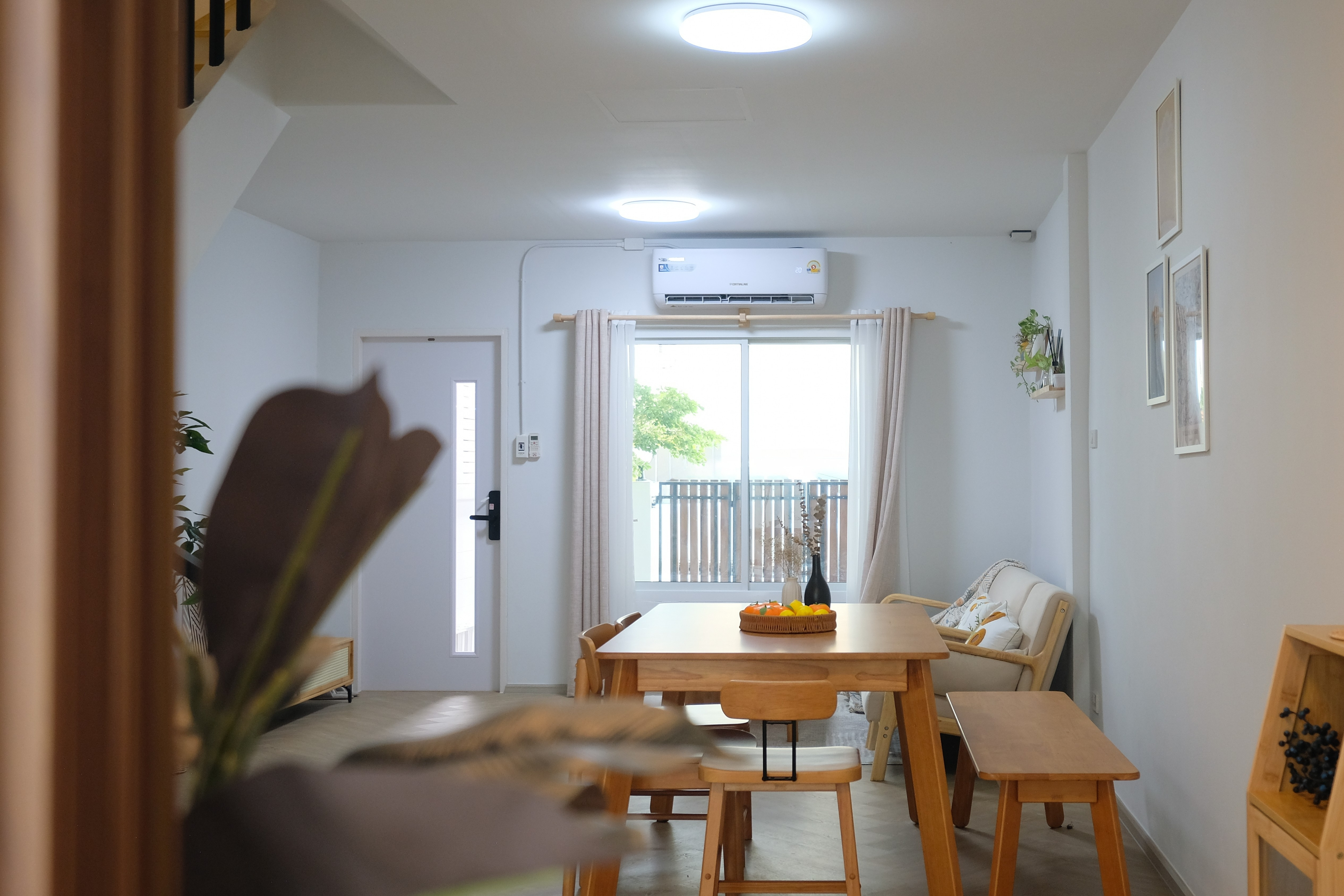 บ้านที่ตกแต่งสไตล์มินิมอล สแกนดิเนเวียน พร้อม Minimal Garden หลังบ้าน และครัวขนาดใหญ่ โปร่ง ไม่ทึบ เมื่อเปิดหน้าต่างหน้าบ้านหลังบ้าน ลมก็โฟลว์ผ่านบ้านได้ อยู่สบายไม่ต้องเปิดแอร์ (แต่ก็ติดแอร์ชั้นล่างให้แล้วนะ) แต่งครบให้ทุกอย่างที่เห็น พร้อมเข้าอยู่ทันที