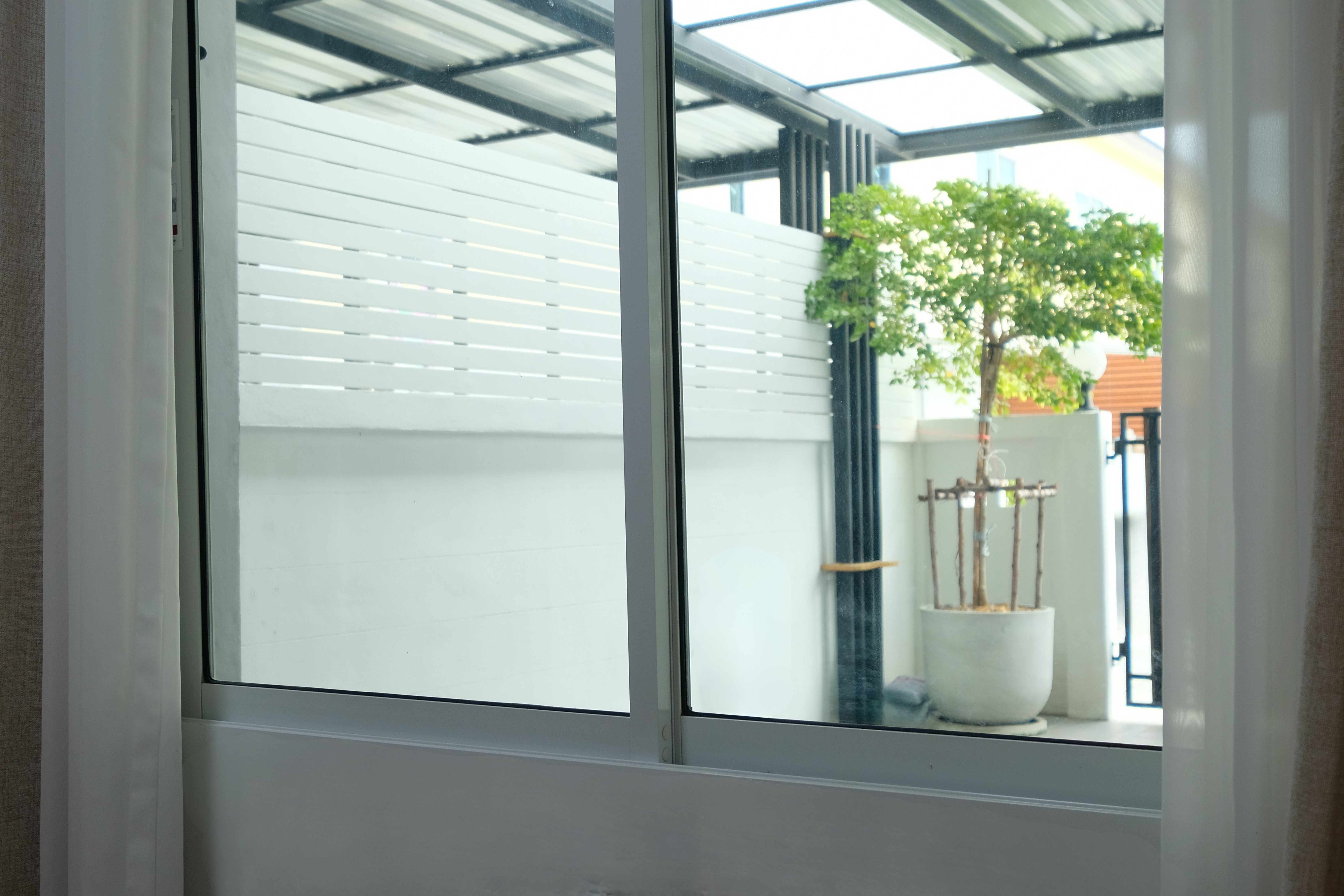 -ประตูกระจกบ้านใหญ่หลังบ้าน พร้อมจัดสวน Minimal Garden