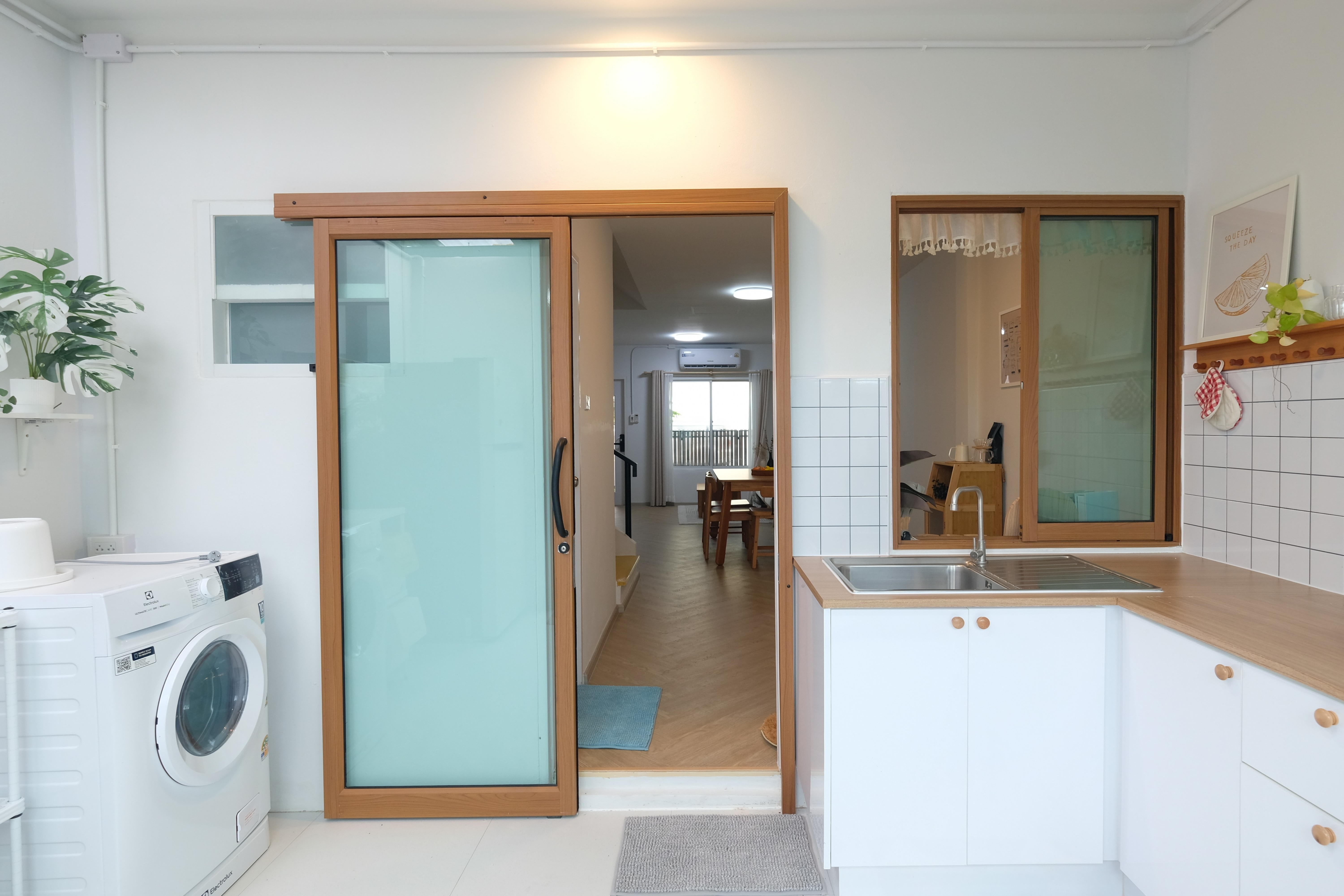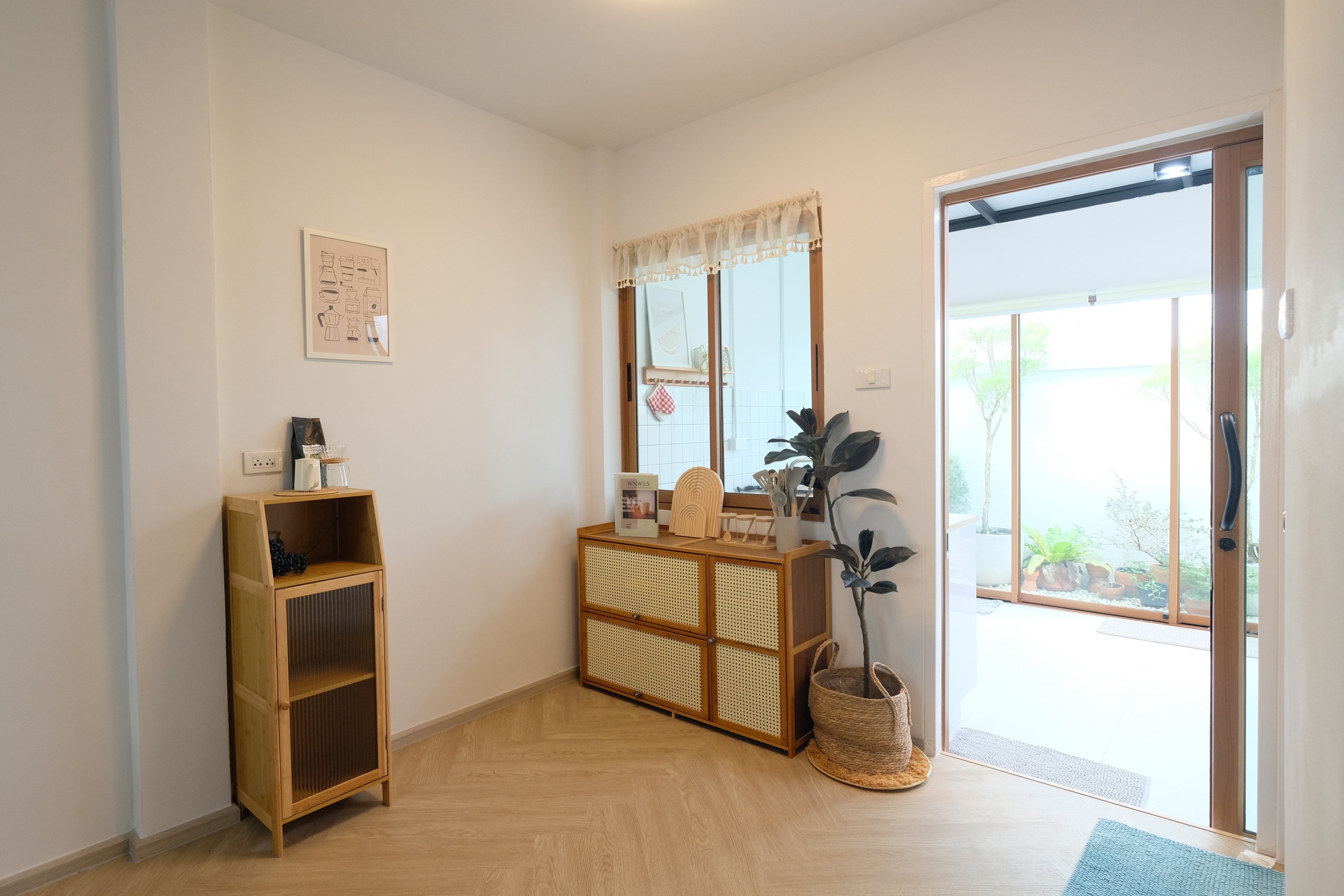 -ประตูเปลี่ยนใหม่เป็นแบบมีช่องแสงเพิ่มความโปร่งให้กับบ้าน