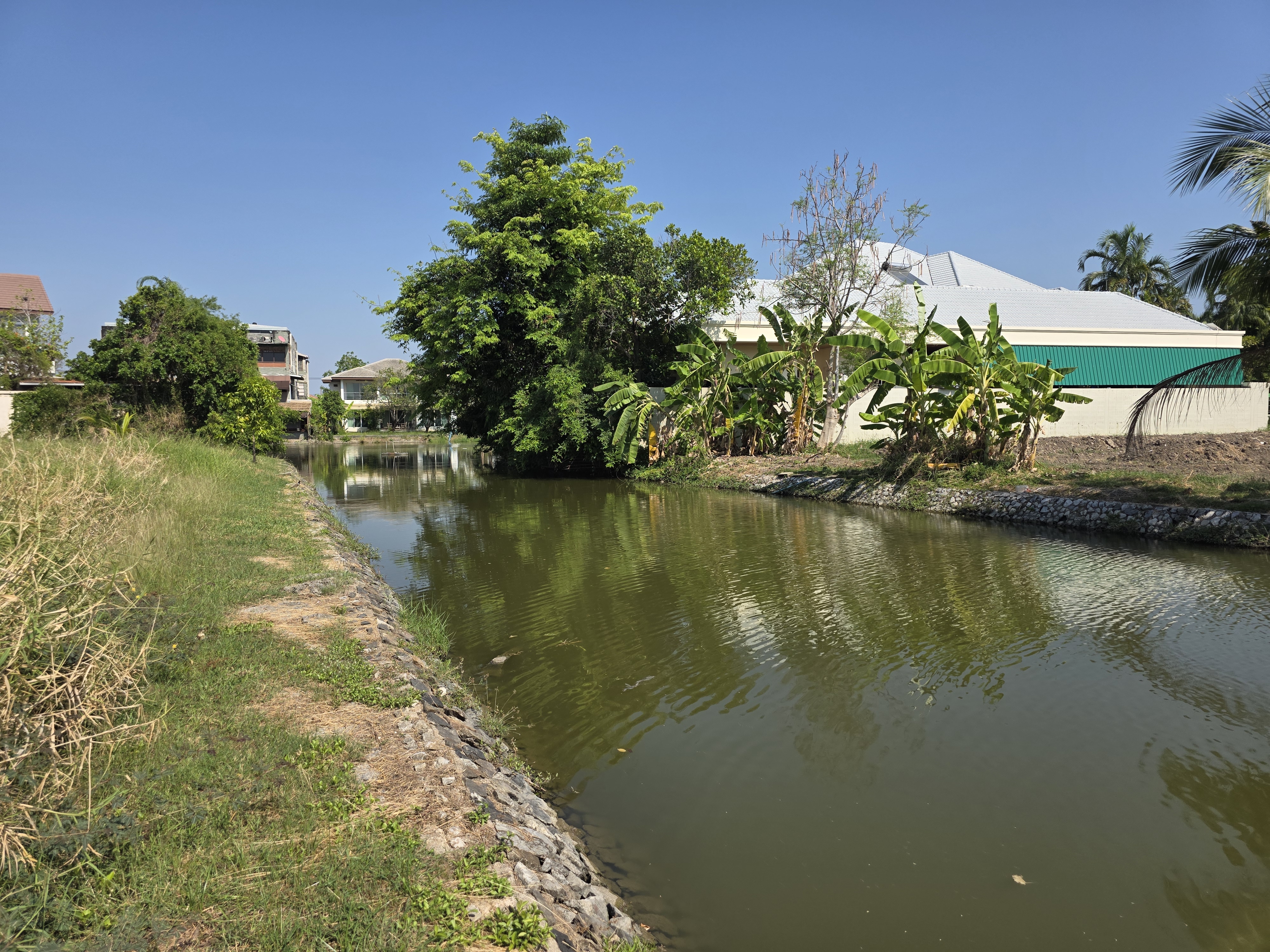 ขายที่ดิน หมู่บ้านวินด์มิลล์ (Windmill Village) ซอยกิ่งเก้ว 21 ขนาด 221 ตารางวา แปลงติดริมน้ำใกล้ห้าง Mega Bangna