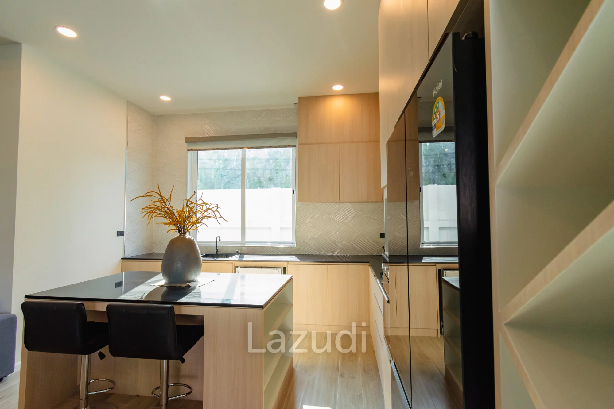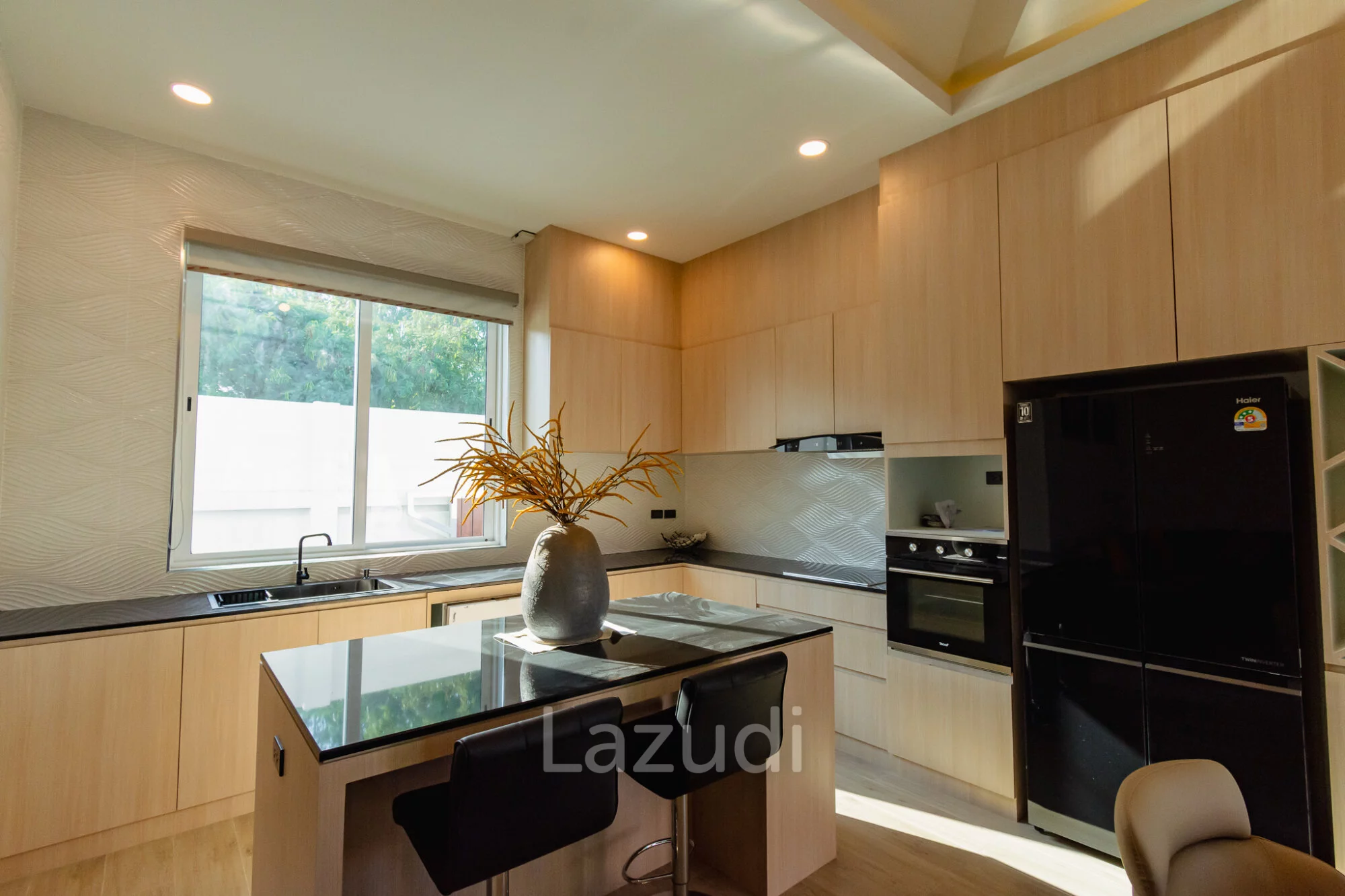 ห้องครัวยุโรป (Modern European Kitchen): ครัวบิวท์อินระดับพรีเมียม พร้อม Island ขนาดใหญ่และอุปกรณ์ไฟฟ้าครบชุด