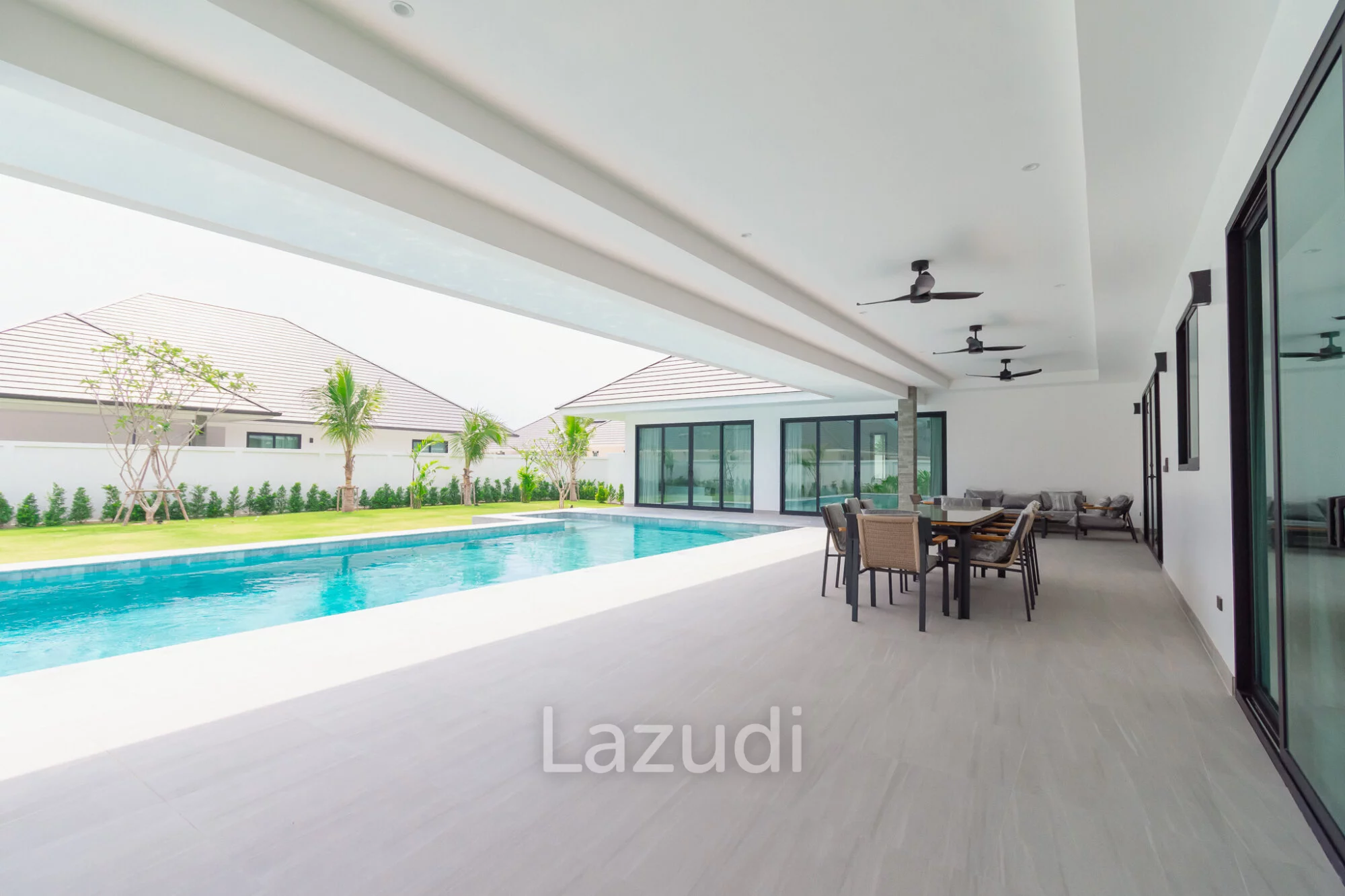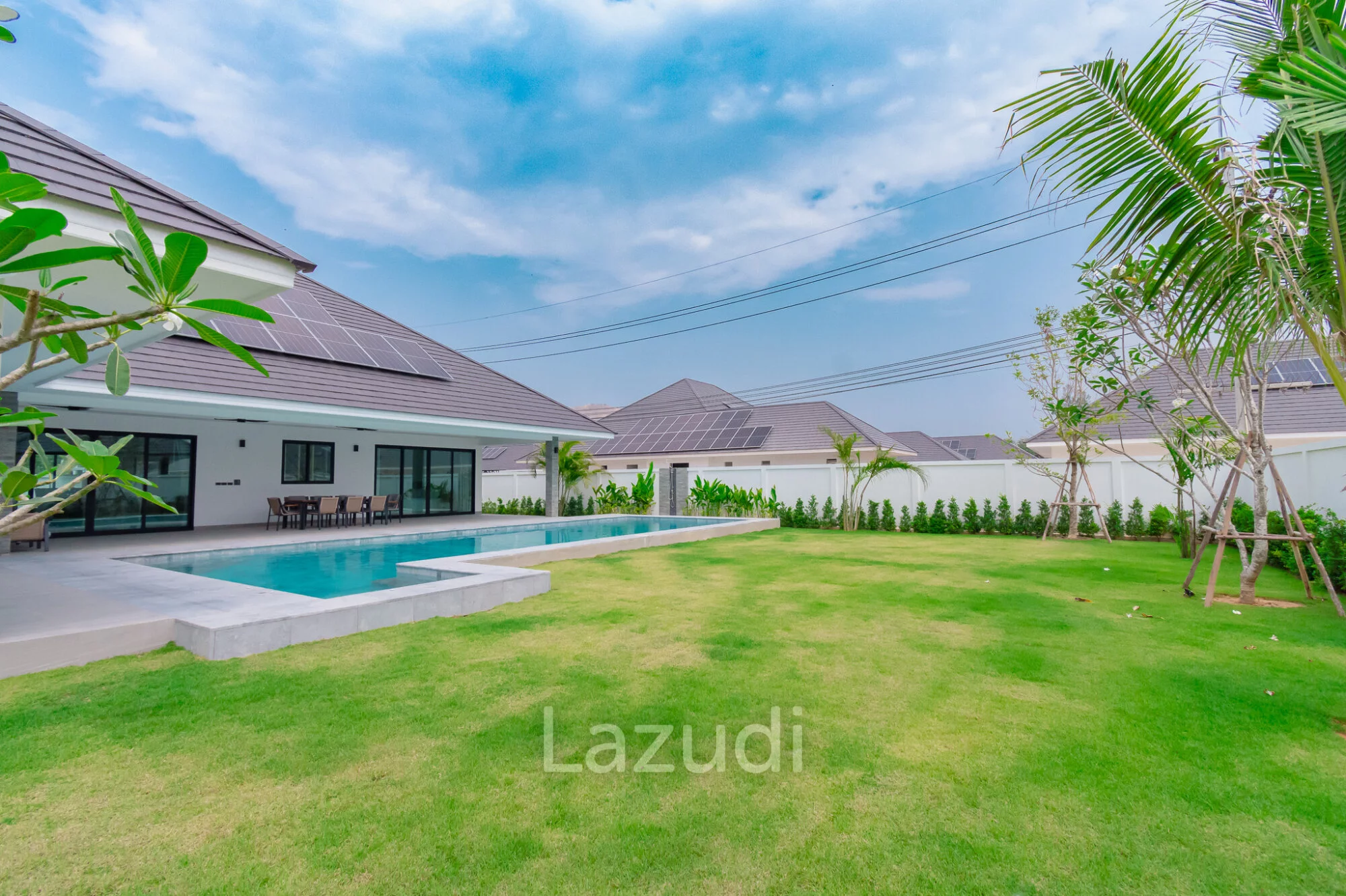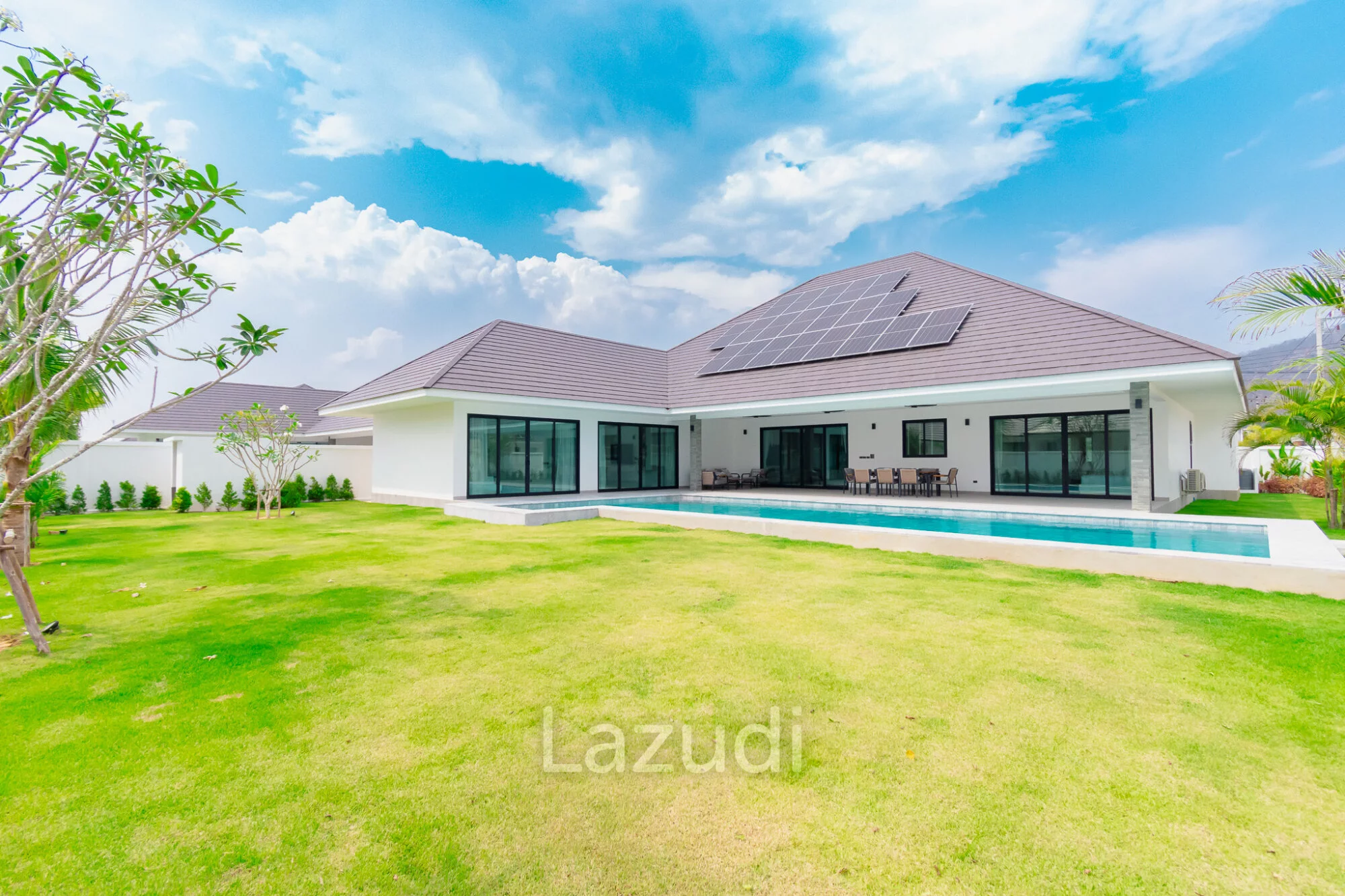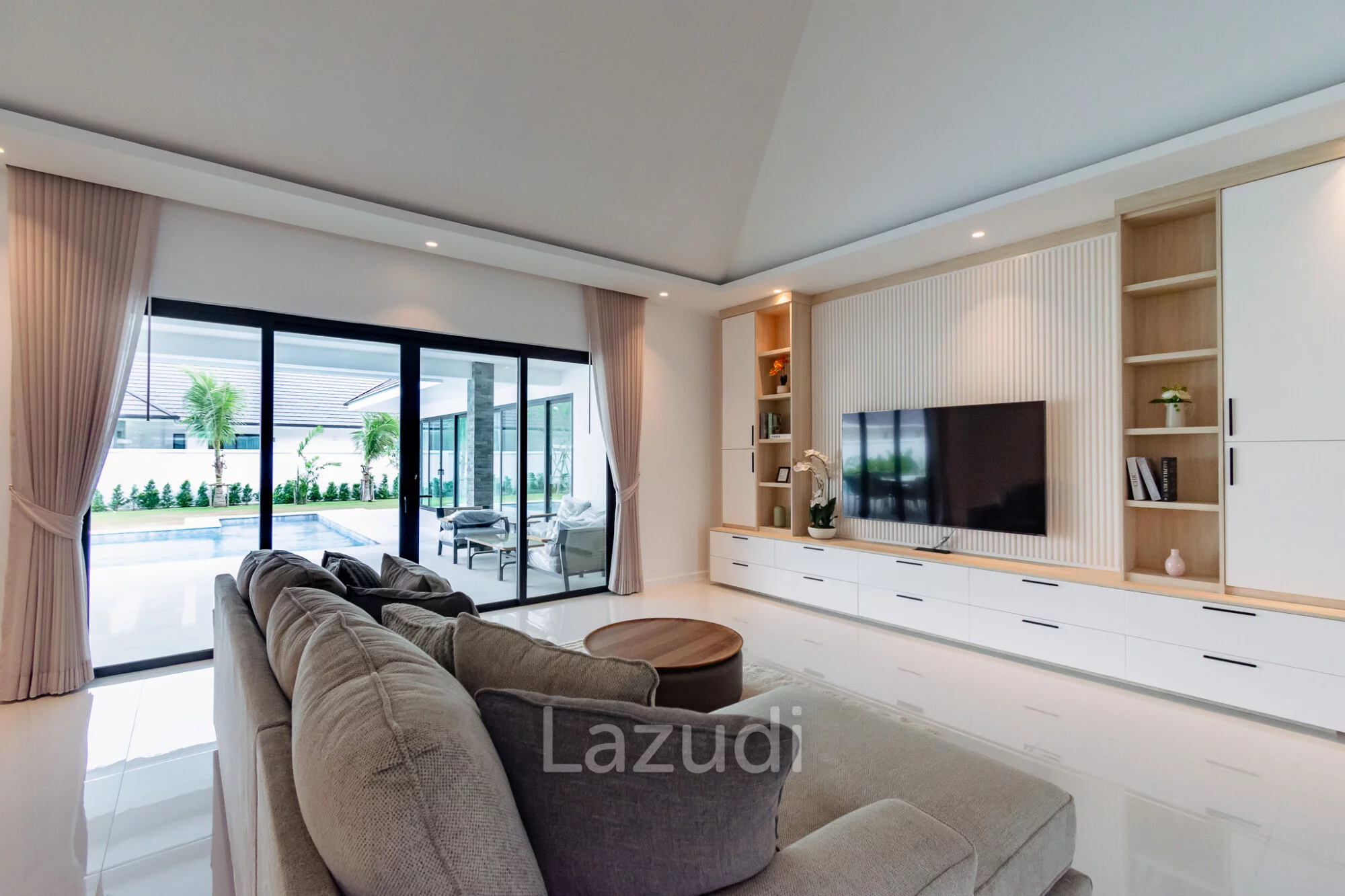 English: Experience the pinnacle of luxury living with this bespoke off-plan pool villa at The Clouds Hua Hin 3. Featuring a massive 408 sqm of living space this villa combines sleek modern architecture with eco-friendly technology including a high-quality solar panel system. The open-plan design maximizes natural light and airflow creating a seamless connection between the indoor luxury and the private outdoor terrace. Located in the serene area of Hin Lek Fai this property offers ultimate privacy and stunning mountain views making it an exceptional choice for a permanent residence or a high-end holiday home.