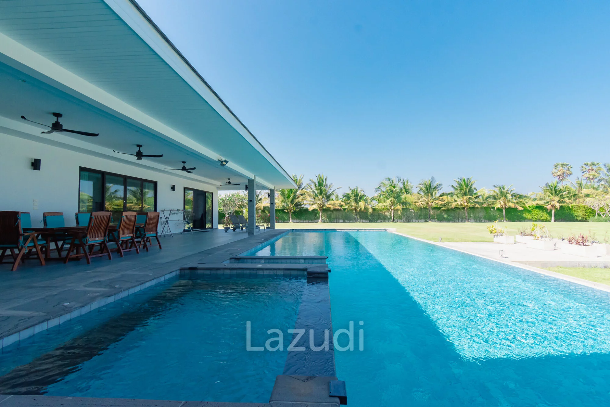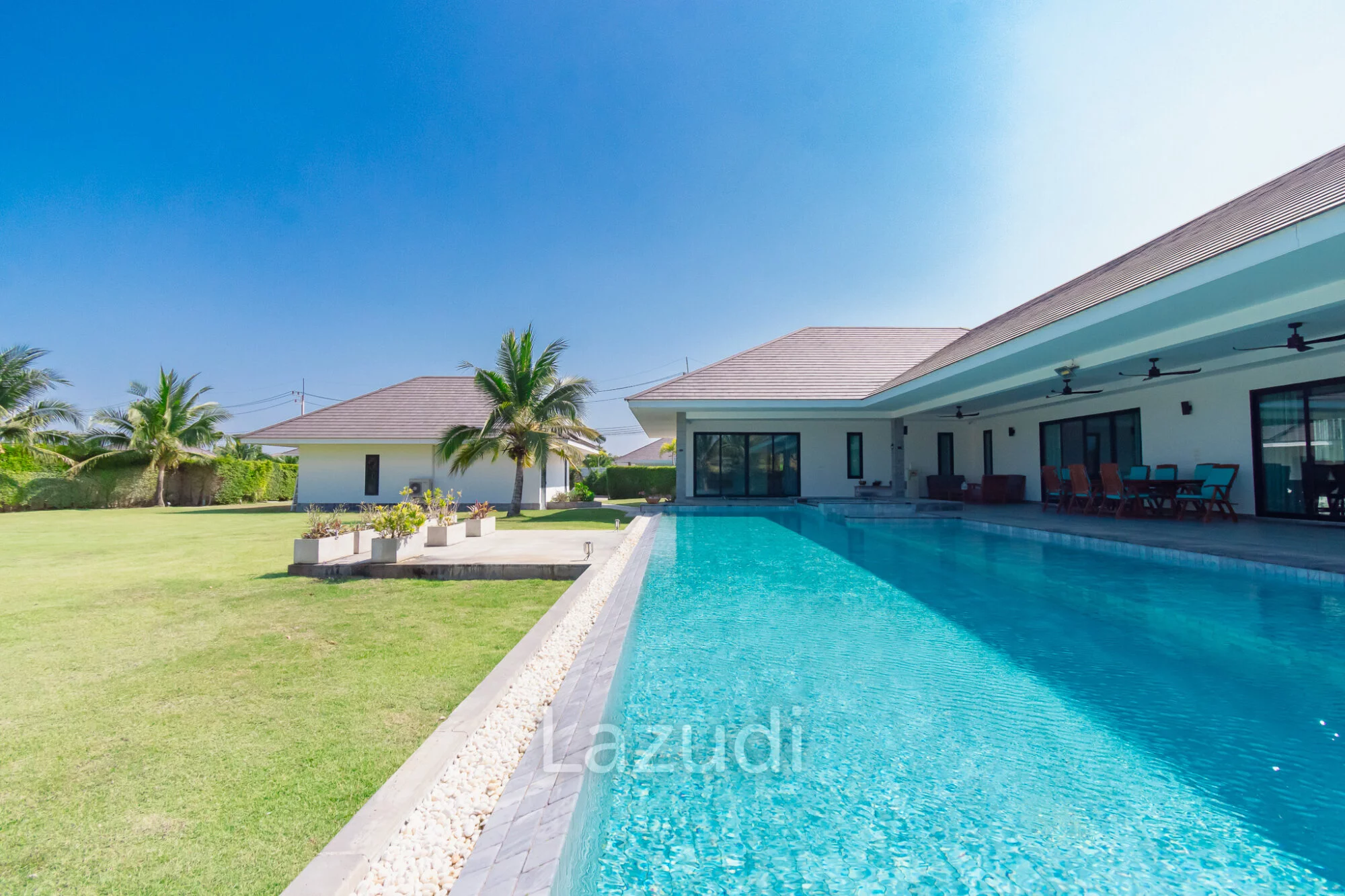 ภาษาไทย: พบกับบ้านในฝันที่ตอบโจทย์ครอบครัวใหญ่ Parkland Villa พูลวิลล่าหรูดีไซน์สวยที่มาพร้อมความกว้างขวางถึง 4 ห้องนอน ตัวบ้านถูกออกแบบมาให้มีความโอ่อ่า เพดานสูง และเปิดรับแสงธรรมชาติอย่างเต็มที่ ไฮไลท์สำคัญคือพื้นที่พักผ่อนริมสระว่ายน้ำส่วนตัวที่กว้างขวาง เหมาะสำหรับการจัดปาร์ตี้หรือพักผ่อนกับครอบครัว ตั้งอยู่ในโซนหินเหล็กไฟที่เงียบสงบ แต่ยังคงความสะดวกในการเดินทางไปสนามกอล์ฟแบล็คเมาท์เทนและใจกลางเมืองหัวหิน เป็นวิลล่าที่ผสมผสานความหรูหราและความอบอุ่นเข้าด้วยกันอย่างลงตัว