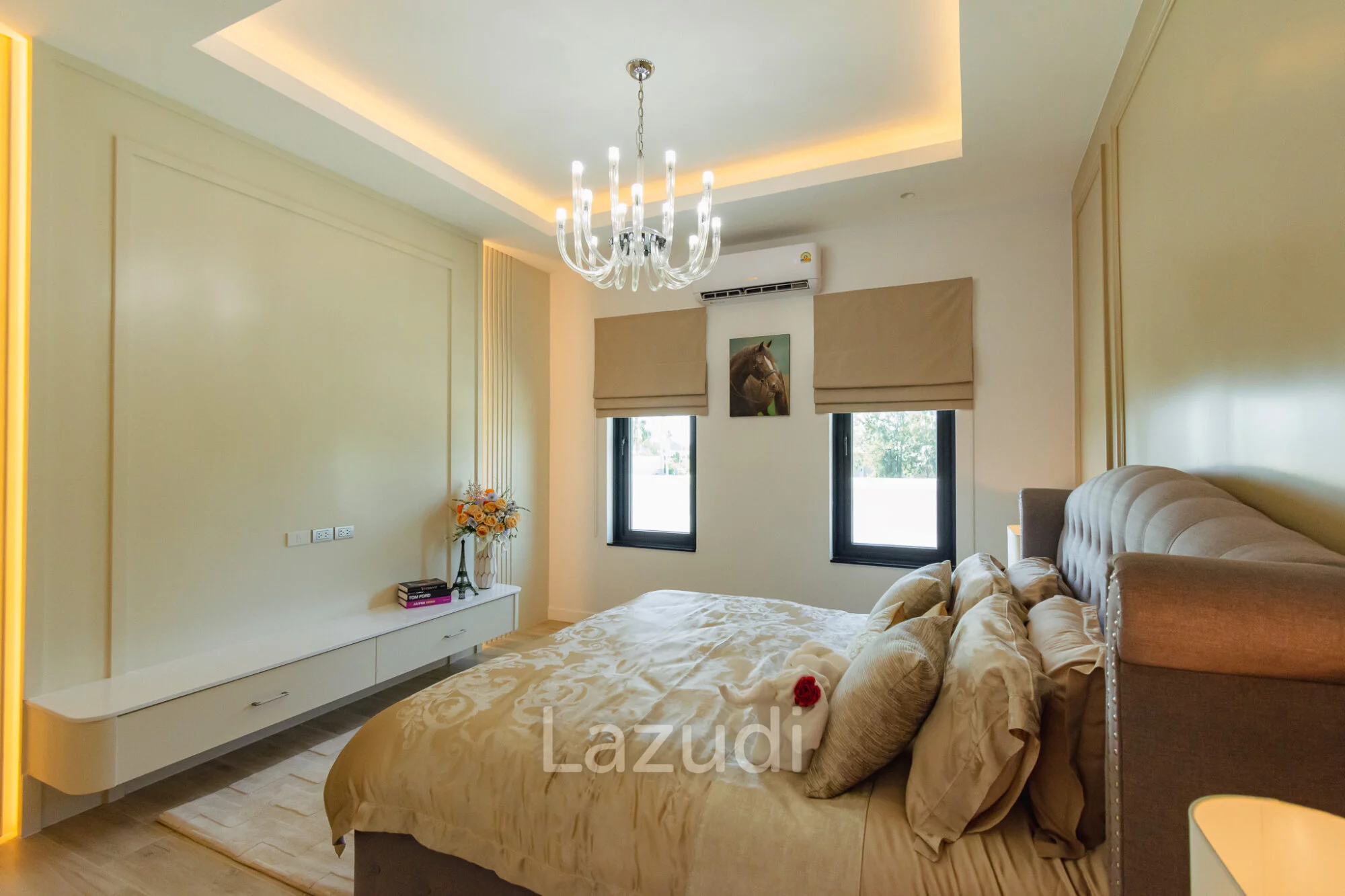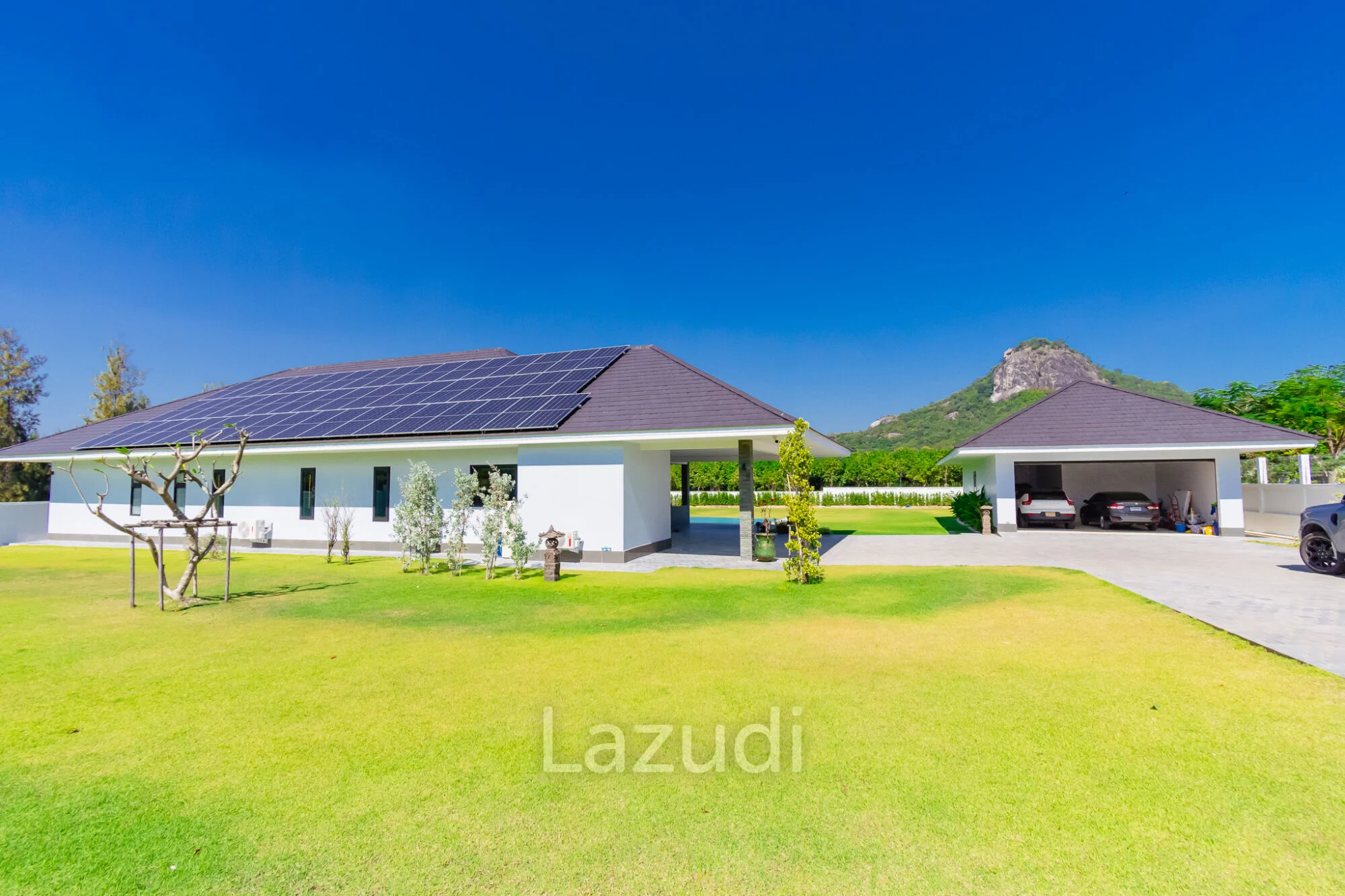 English: A rare find in Hua Hin! This expansive 6-bedroom luxury pool villa offers unparalleled space and comfort for large families or groups. Designed with a grand open-plan layout the villa features high ceilings and high-end finishes seamlessly integrating indoor luxury with a massive private swimming pool and expansive outdoor entertaining areas. Situated in a peaceful and private pocket of Hin Lek Fai this property provides the perfect balance of serenity and convenience located just a short drive from Black Mountain Golf Club and International schools. An exceptional choice for a primary residence or a high-yield vacation rental investment.