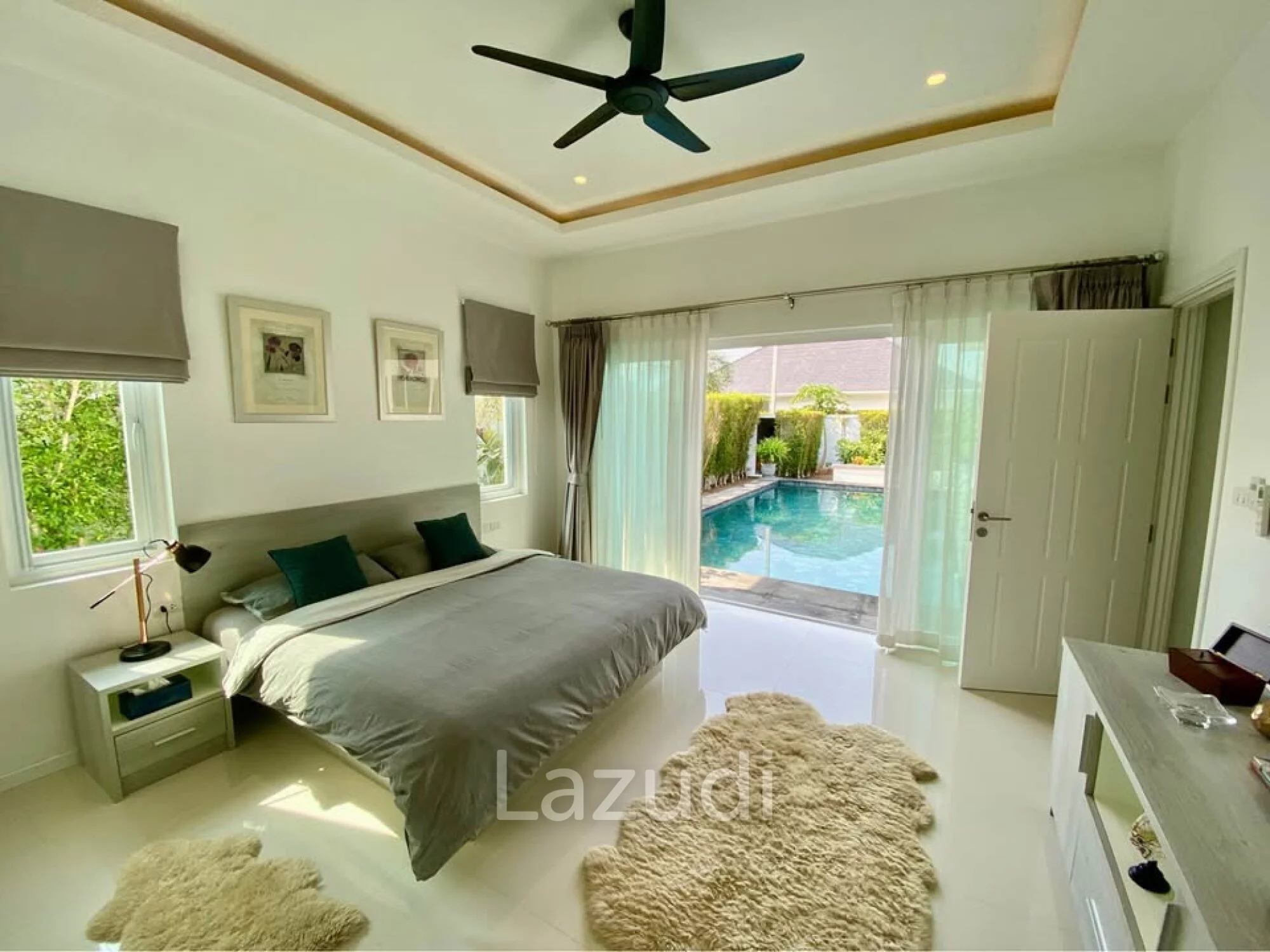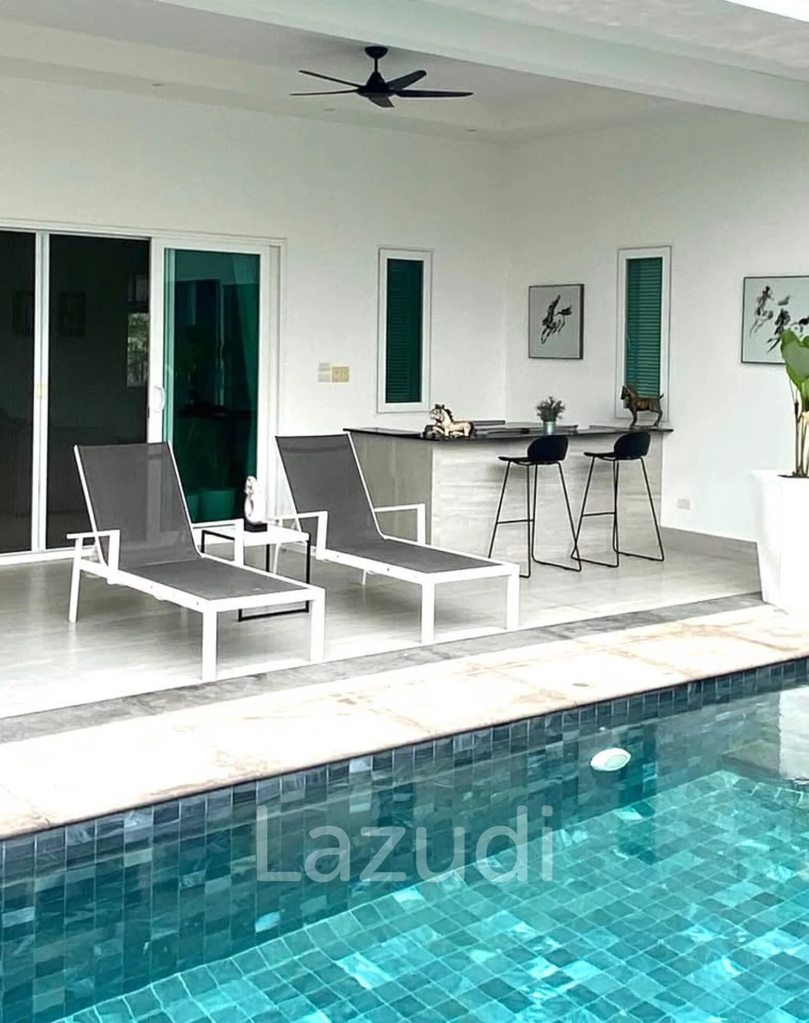 English: Experience the perfect blend of style and comfort at Aria Hua Hin. This luxurious 3-bedroom pool villa features a sleek modern architectural design with high-quality finishes throughout. The spacious open-plan living area is filled with natural light thanks to the floor-to-ceiling glass doors that lead directly to the private saltwater swimming pool and sun-drenched terrace. The villa includes a premium European-style kitchen and well-appointed bedrooms designed for relaxation. Situated in the highly desirable Soi 112 area Aria Hua Hin offers a secure and peaceful community while being just a short drive from Banyan Golf Club top restaurants and Hua Hin's beautiful beaches.
